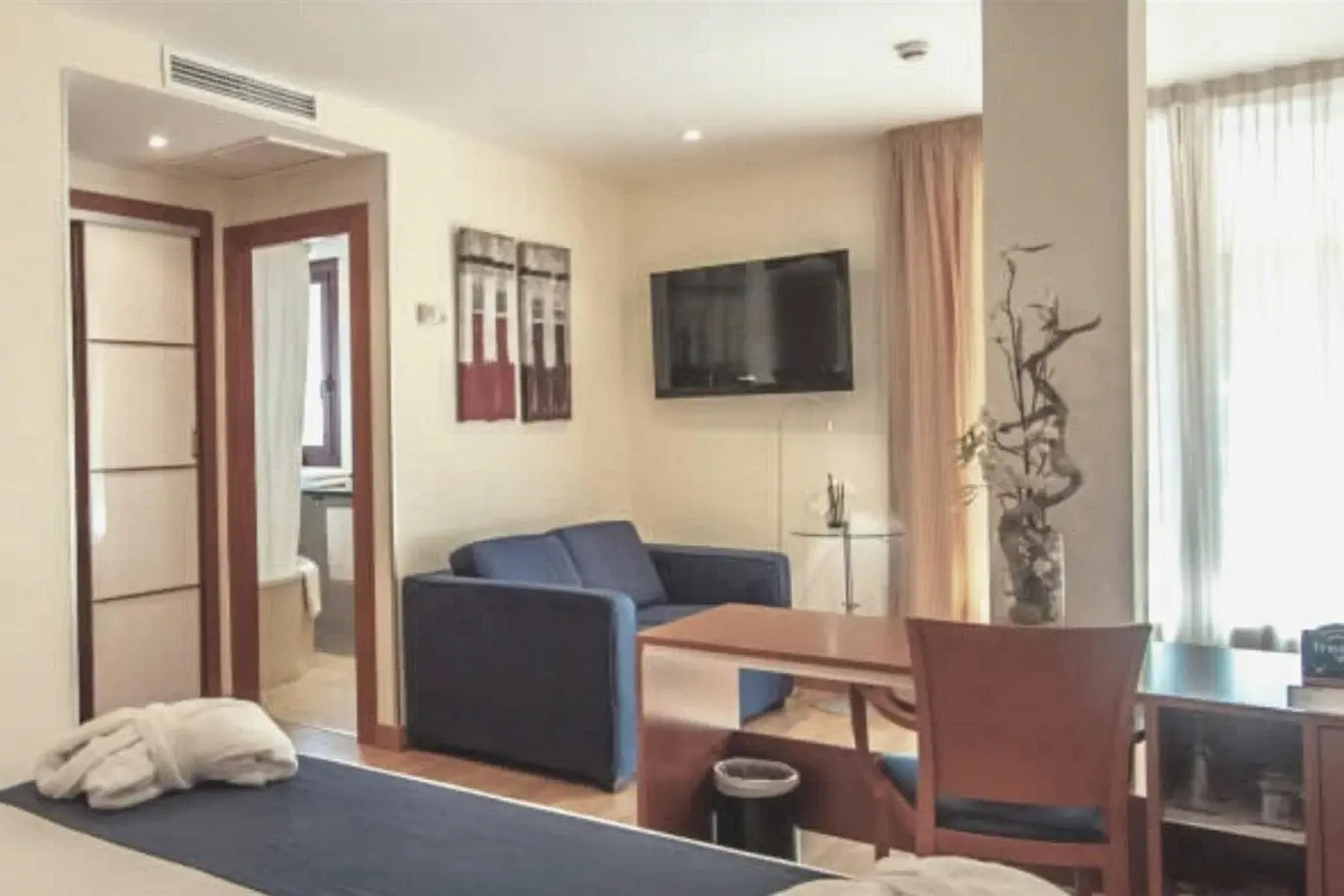 Atmosfera każdego z naszych 58 pokoi zadba o Państwa doskonałe samopoczucie. Do dyspozycji gości jest lobby wraz z recepcją z check-out-service. Większość pięter osiągalna jest za pomocą windy. Na miejscu znajduje się przechowalnia bagażu, sejf i kantor wymiany walut. Wi-Fi umożliwia dostęp do internetu również w pomieszczeniach ogólnodostępnych. Pomocą w rezerwacji wycieczek służy Państwu nasz tour-desk. Do oferty gastronomicznej hotelu należy restauracja i sala śniadaniowa. Auto pozostawić można w garażu oraz na parkingu. Do pozostałych świadczonych usług należą wielojęzyczny personel, wypożyczalnia samochodów i pralnia. Podróżnych preferujących zapoznanie się z okolicą w sposób aktywny ucieszy z pewnością możliwość wypożyczenia rowerów. Dostępna jest powierzchnia biznesowa z faks i projektor.Pokoje - RH Sorolla Centro