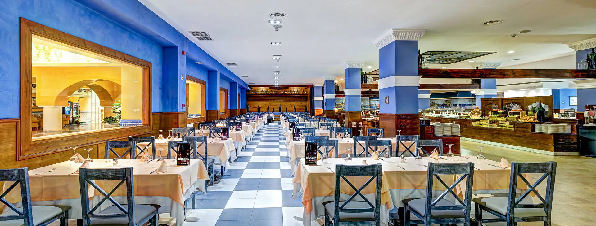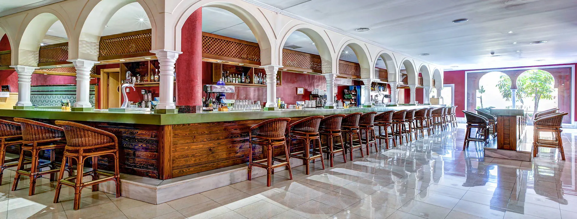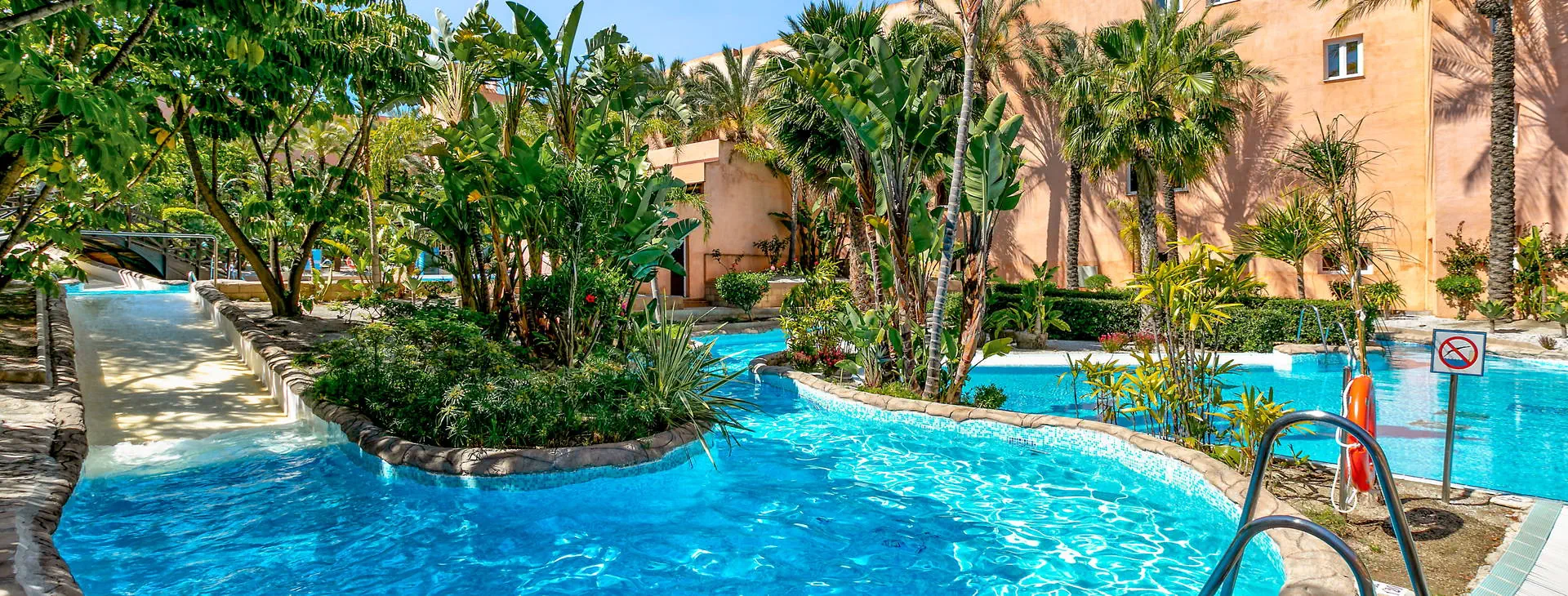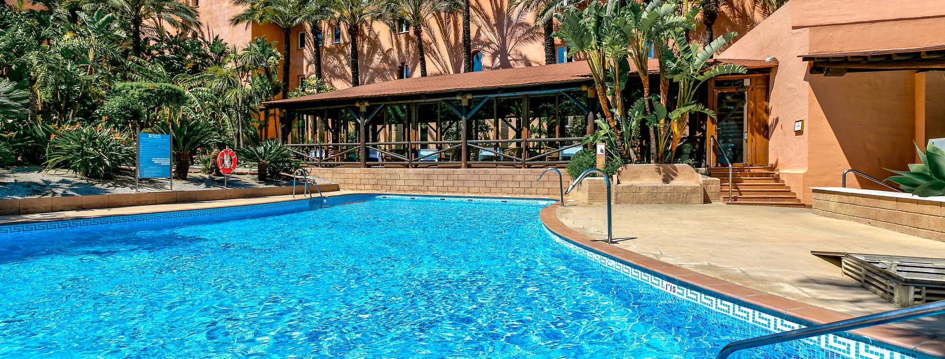 Recepcja i lobby2 baseny, w tym jeden ze swim up barem, basen z animacjami, basen z 3 zjeżdżalniami, duży basen typu infinity (pow. ok. 1000 m2), 2 jacuzzi, słodka woda w basenach, 2 duże tarasy słoneczne w ogrodach palmowych z leżakami oraz parasolami, ręczniki basenowe (depozyt + wymiana ok. 1 Eur). Restauracje: 2 restauracje bufetowe (jedna otwarta w lipcu i sierpniu), restauracja a'la carte (czynna w lipcu i sierpniu, konieczna rezerwacja), swim up bar. Pozostałe informacje: garaż (płatny ok. 25 Eur/dzień), pralnia oraz prasowalnia (płatne), sklep z pamiątkami, wypożyczalnia samochodów.
