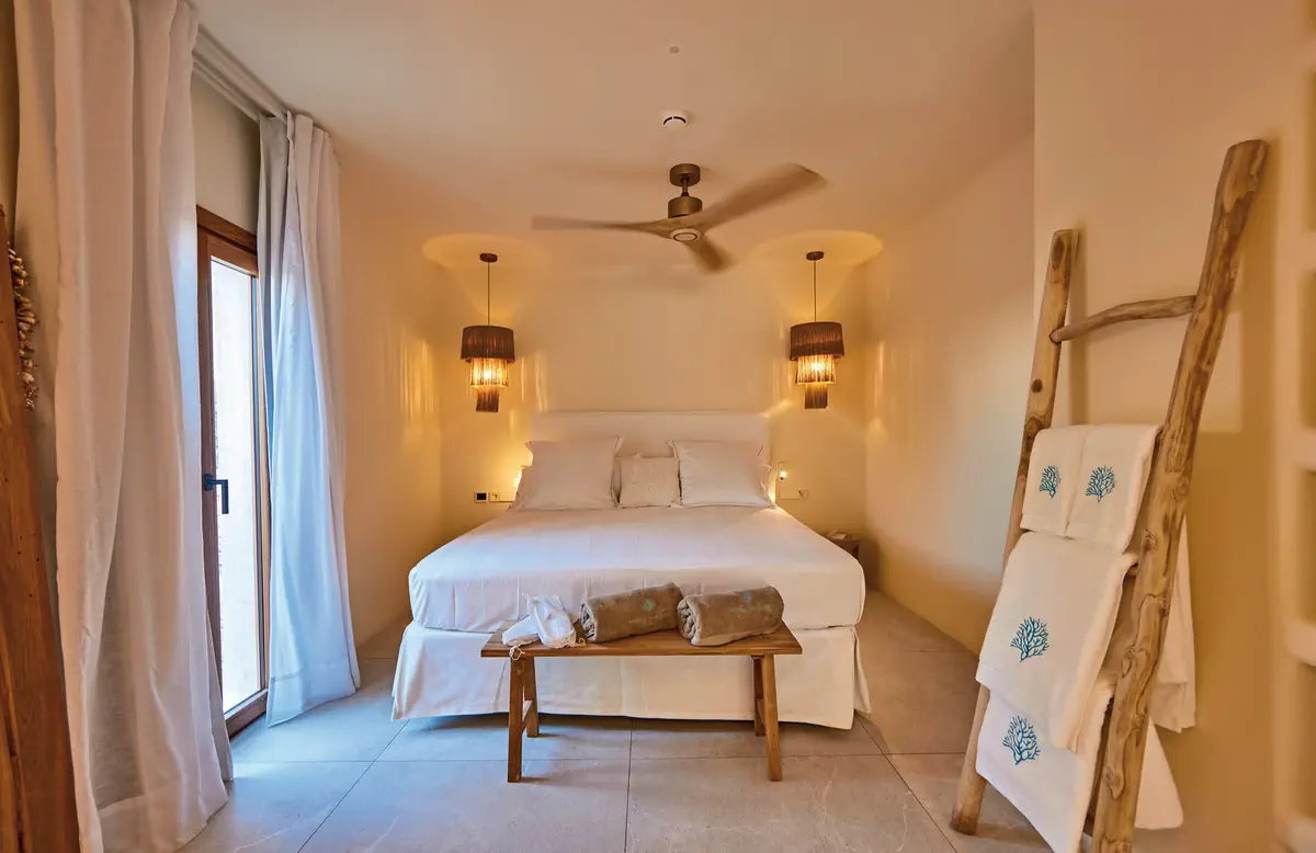 36-40 m², suita, piętro, top, widok na ogród, widok na ląd, sofa, 1 łazienka, prysznic, suszarka do włosów, klimatyzacja, sejf, 1 TV (satelitarna, płaski ekran), Wi-Fi, czajnik, mikrofalówka, ekspres do kawy, lodówka, taras (umeblowany)Wyżywienie - Mar Suites Formentera By Universal Beach