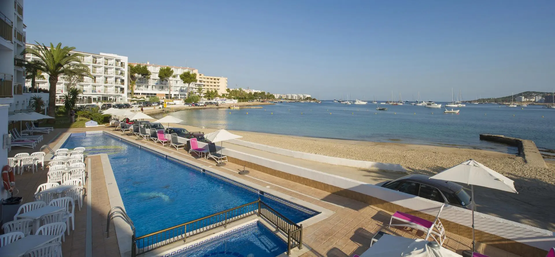 - San Antonio - przy plaży - w pobliżu bary, restauracje, przystanki autobusowe, sklepy - ok. 2 km od portu - ok. 15 km od lotniska - ok. 20 km od IbizyPlaża - S'Estanyol