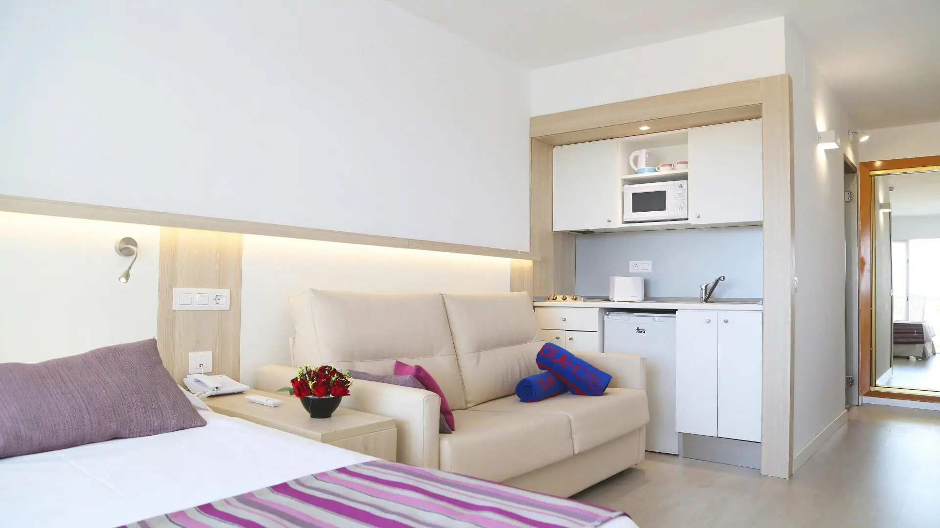 Pokoje wyposażone są w klimatyzację, wentylator i łazienkę. Większość pokoi posiada balkon z widokiem na okolicę. Spokojny sen zapewni Państwu sofa. Dla naszych małych gości dostępne są za dodatkową opłatą dostawki oraz łóżeczka dziecięce. Za dodatkową opłatą skorzystać można z sejfu. Na wyposażeniu aneksu kuchennego znajduje się lodówka. Elementami podwyższającymi komfort pobytu są internet, telefon, telewizor i Wi-Fi (odpłatnie). Dostępne są pokoje przystosowane dla osób poruszających się na wózkach inwalidzkich. W łazienkach dla gości przygotowane są na codzienny użytek suszarka do włosów i telefon. Istnieje również możliwość rezerwacji kwatery z łazienką dla osób niepełnosprawnych. Obiekt oferuje pokoje rodzinne, pokoje dla niepalących i pokoje dla palących.Oferta sportowo-rozrywkowa - Globales Costa De La Calma (ex Ola Bouganvillia)