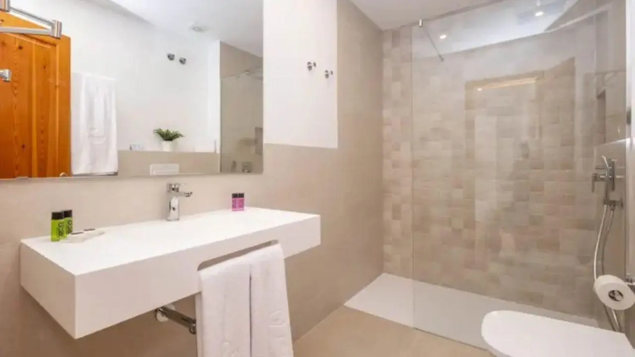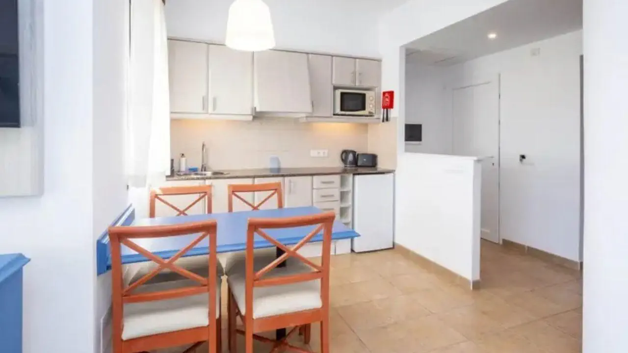 Apartament z sypialnią - ok. 44 m2, maks. dla 2 dorosłych i 1 dziecka; dwa łóżka pojedyncze (sypilania) i sofa (salon). Prywatna łazienka z prysznicem (wyremontowana), suszarka do włosów, deska do prasowania, sejf (płatny), telefon (płatny), aneks kuchenny: zlew, mikrofalówka, czajnik, toster, naczynia, TV. Pokój z prywatnym ogrodem. Apartament z dwiemia sypialniami - maks. dla 5 dorosłych; dwie sypilanie i sofa (salon). Poza tym wyposażony jak apartament z dwiema sypialniami.WYŻYWIENIE - Isla Del Aire