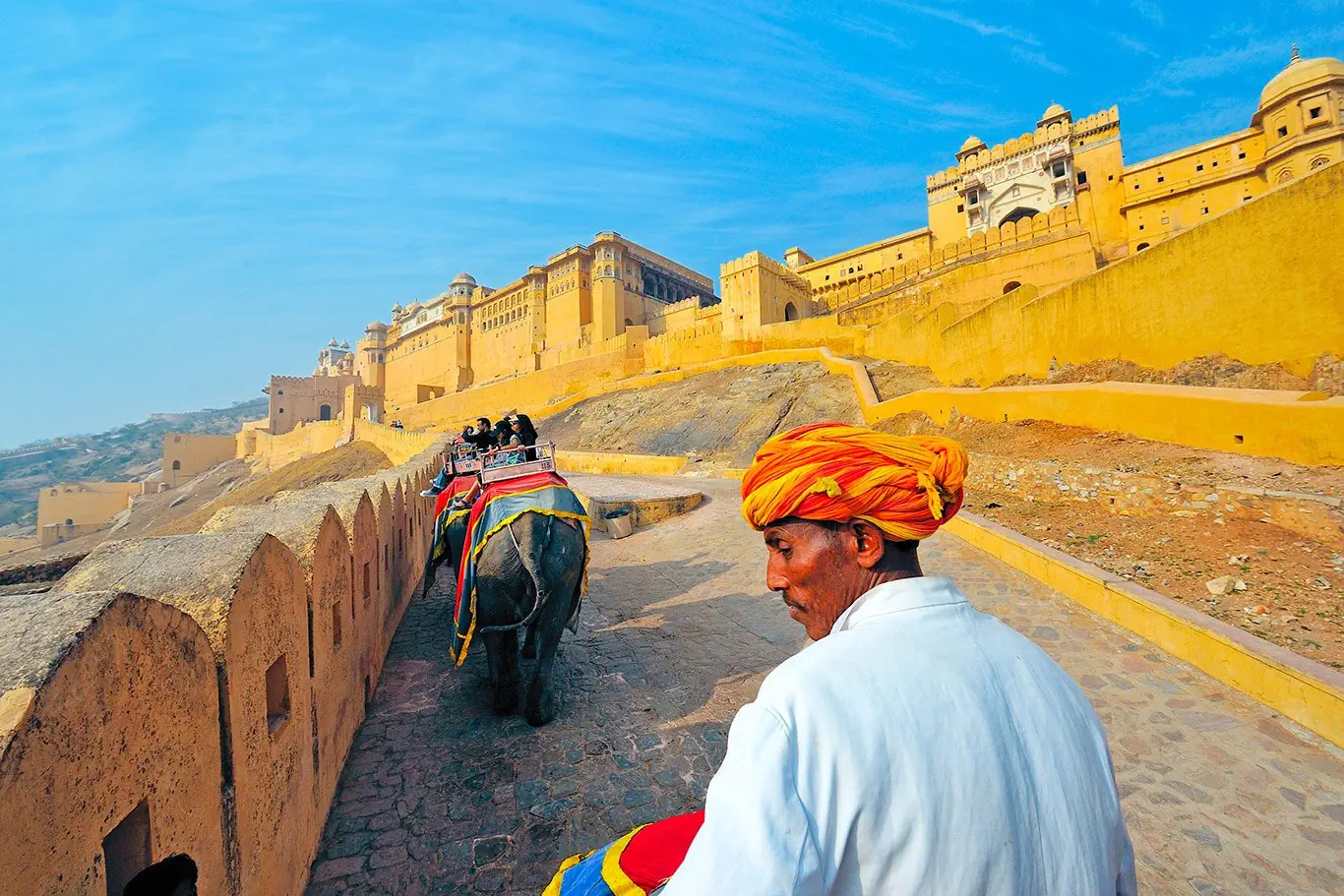 Dzień 5. Jaipur (trasa około 30 km). Rankiem, po śniadaniu, udamy się do Fortu Amber, którego pierwszy dziedziniec zdobędziemy na słoniach. XI-wieczny fort jest doskonale umiejscowioną, mocno obwarowaną Radżpucką fortyfikacją, a jednocześnie przez długi czas był główną siedzibą bogatego rodu spod znaku słońca. Niewątpliwe najpiękniejsze budowle to Brama Ganesi oraz Shish Mahal - zdobiony tysiącami kawałków luster. W dalszej części dnia wrócimy w obręb murów XVIII-wiecznego miasta Jaipur, zwanego też Różowym Miastem. Zwiedzimy obecną siedzibę Radży Jaipuru - Pałac Miejski oraz sprawdzimy aktualny czas słoneczny na olbrzymich kamiennych przyrządach astronomicznych w Jantar Mantar. Kolejna nazwa Jaipuru to Miasto Klejnotów, z bogactwa których i ich doskonałej obróbki miasto słynie, więc będąc tam nie można pominąć krótkiego pokazu ręcznej obróbki kamieni szlachetnych. Zwiedzając Jaipur na pewno też zrobimy sobie zdjęcia przy Hava Mahal (Pałacu Wiatrów) oraz Jal Mahal (Pałacu na Wodzie). Po południu czas wolny. Chętni będą mogli (za dodatkową opłatą) odwiedzić urokliwie położoną, pomiędzy okolicznymi wzgórzami Galta Ji. Wielowiekowy kompleks świątyń nawiązuje do żyjącego tu około 2500 lat wcześniej Pana Galta - mistyka, mędrca, cudotwórcy. Oprócz wielu funkcjonujących świątyń, poświęconych różnym hinduskim bogom oraz świętych basenów ablucyjnych, wielką atrakcją Galty są stada małp zamieszkujące na stałe te tereny. Obiadokolacja i nocleg w hotelu.