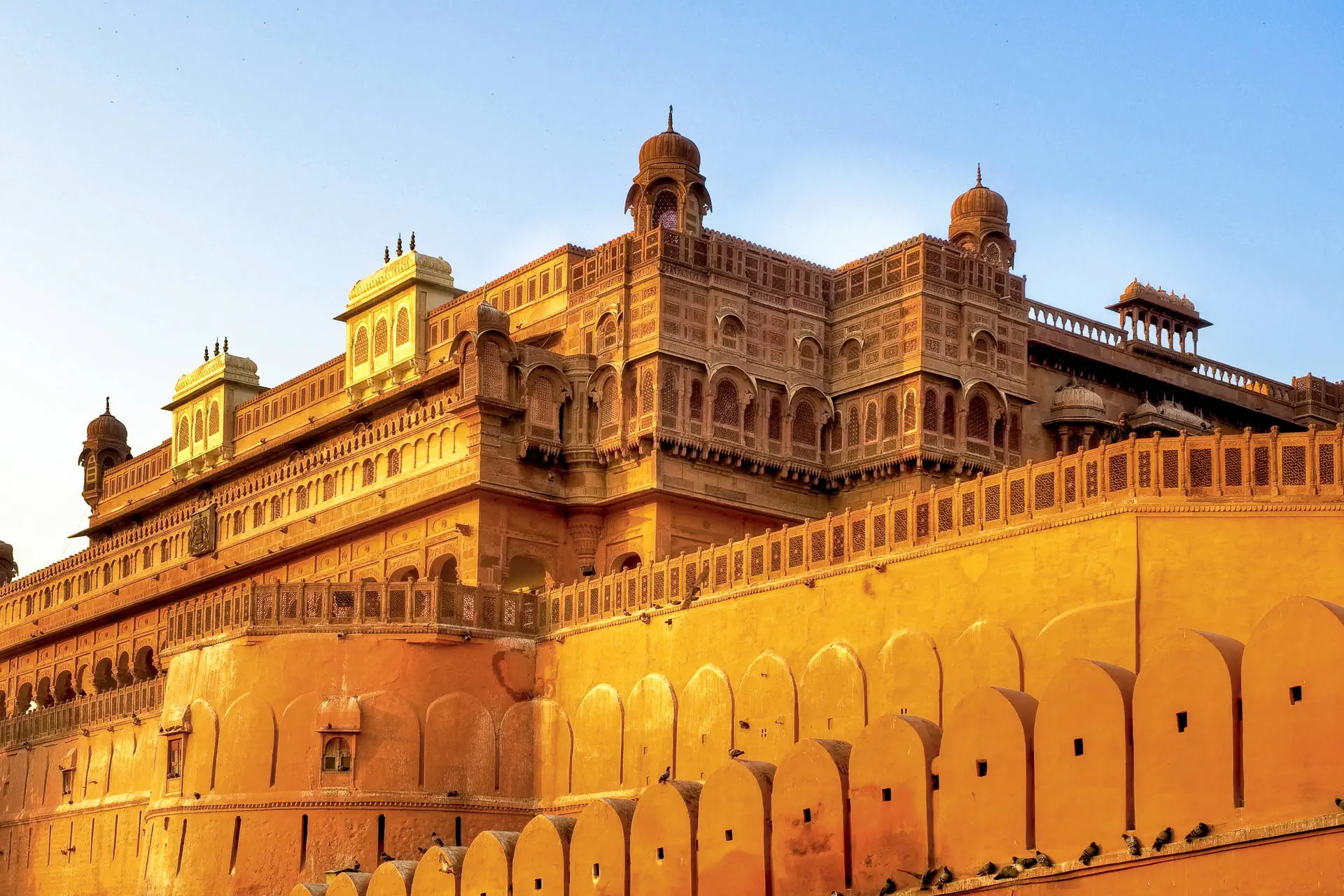 Dzień 1 Zbiórka przy stanowisku odpraw Rainbow na lotnisku im. F. Chopina w Warszawie na 2,5 godz. przed wylotem samolotu. Przelot samolotem rejsowym na trasie Warszawa - New Delhi, z przesiadką w jednym z portów międzynarodowych. Aktualne rozkłady prosimy sprawdzać na stronie operatora. Dzień 2 Przylot do New Delhi. Transfer do hotelu, śniadanie i czas na odpoczynek. Następnie zwiedzanie Delhi, w programie m.in.: Złota Świątynia sikhijska, grobowiec Humayuna (pierwowzór słynnego Taj Mahal). Z zewnątrz zobaczymy budynki rządowe: Sansad Bhawan (Parlament Indyjski) oraz Rashtrapati Bhawan (Dom Prezydencki). Kolejno udamy się pod India Gate (słynną bramę Indii). Po południu zwiedzanie Starego Delhi: zwiedzimy największy w Indiach Północnych meczet Jama Masjid oraz Raj Ghat – miejsce kremacji Mahatmy Gandhiego. Powrót na obiadokolację. (Trasa ok. 40 km). Dzień 3 Po śniadaniu przejazd do Shekhawati – krainy słynącej z handlu opium, bawełną i przyprawami. Obszar półpustynny, nazywany rajastańską galerią sztuki pod gołym niebem. Podziwiać tu można unikatowe malowidła będące ozdobą wewnętrznych i zewnętrznych ścian haveli (rezydencji kupieckich), a także świątyń i fortów. Przejazd do miejscowości Mandawa, popołudniowy spacer ulicami kupieckiego miasta założonego w XVIII w. Ze względu na bogatą zabudowę, pokrytą pięknymi freskami, region ten zwany jest również „krainą malowanych miast”. Zakwaterowanie w hotelu, obiadokolacja i nocleg w hotelu w ok. Mandawy. (Trasa ok. 260 km). Dzień 4 Po śniadaniu przejazd do Bikaneru (ok. 3,5 godz.). Po drodze odwiedzimy słynną na całe Indie 600-letnią świątynię Karni Mata, którą zamieszkuje tysiące otoczonych czcią szczurów. W Bikaner zwiedzimy Fort Junagarh, który kryje w sobie przepiękne pałace i świątynie. Zakwaterowanie w hotelu. Obiadokolacja i nocleg w Bikaner. Dzień 5 Śniadanie i przejazd do Jaisalmer – najstarszego, nadal ufortyfikowanego miasta w Rajasthanie. Jaisalmer w promieniach zachodzącego słońca sprawia wrażenie mieniącego się złotem i klejnotami, dlatego też nazywany jest Złotym Miastem. Będzie także okazja do zakupu wyrobów tekstylnych, charakterystycznych dla regionu. Zakwaterowanie w hotelu. Obiadokolacja i nocleg w Jaislamer (Trasa ok. 330 km). Dzień 6 Po śniadaniu zwiedzanie Złotego Fortu z XII w., który urzeka baśniową zabudową starych murów, bastionów, pałaców, świątyń i bazarów. Po dziś dzień stanowi on „miasto w mieście” – miniaturowe uliczki, domy, hotele, sklepiki i co ciekawe nadal jest zamieszkały przez ponad 5 tys. os. Z perspektywy fortu roztacza się widok na całe miasto, w większości wybudowane z żółtego piaskowca, wyrastające niczym gigantyczny zamek z piasku z otaczającej je pustyni Thar. Następnie przejazd na niezapomniane safari na wielbłądach przez pustynię Thar. Zachód słońca na pustyni. Kolacja urozmaicona pokazem tańca Kalbeliya oraz lokalną muzyką na żywo. (Trasa ok. 60 km). Dzień 7 Po wczesnym śniadaniu przejazd przez pustynne krajobrazy do „błękitnego miasta” – Jodhpur. Zwiedzimy górujący ponad miastem fort Mehrangarh, który wznosi się na 125-metrowej skale. Z murów obronnych otwiera się pocztówkowy widok na stare miasto, a w oddali widać sylwetkę potężnego Umaid Bhawan – rezydencji lokalnego maharadży oraz historyczny hotel, jedną z większych prywatnych posiadłości na świecie. Zobaczymy również Jaswant Thada – miejsce kremacji władców Jodhpuru. Zakwaterowanie, obiadokolacja i nocleg w hotelu w Jodhpur. (Trasa ok. 370 km). Dzień 8 Po śniadaniu przejazd jeepami do Bisznoi Village Camp. Mijając po drodze wioski plemienia Bisznoi, będzie okazja zapoznania się z tradycją, zwyczajami i codziennym życiem lokalnej ludności. Następnie przejazd do Ranakpuru, gdzie wznosi się zachwycający dżinijski zespół świątynny z połowy XV w. Przejazd do hotelu w Udajpur, obiadokolacja i nocleg. (Trasa ok. 320 km). Dzień 9 Po śniadaniu zwiedzanie Udajpuru – miasta zwanego Wenecją Wschodu i uważanego za najpiękniejsze i najbardziej romantyczne w całym Rajasthanie. Baśniową urodą miasta, jego światłem i idealnie przejrzystym powietrzem zachwycali się francuscy impresjoniści. Zwiedzimy ulokowany na brzegu Jeziora Pichola Pałac Miejski. Zobaczymy jedną z głównych atrakcji starego miasta – świątynię Jagdisz z poł. XVII w. poświęconą bogu Wisznu - Kreatorowi Wszechświata. Ozdobą świątyni jest m.in. wykonany z brązu posąg Garudy, pół-ptaka, pół-człowieka, wierzchowca samego Wisznu. Następnie zobaczymy Sahelion Ki Bari – królewski resort przeznaczony do goszczenia przyjaciół rodziny monarszej. Wizyta w lokalnym zakładzie rzemieślniczym. Powrót na obiadokolację i nocleg. (Trasa ok. 20 km). Dzień 10 Po śniadaniu przejazd do Puszkar, należącego do najważniejszych miejsc kultu wyznawców hinduizmu. Jak głosi legenda święte jezioro, będące sercem miasta, powstało w miejscu w którym Brahma upuścił z ręki płatki kwiatu lotosu. To tutaj znajduje się jedyna świątynia wzniesiona ku czci boga Brahmy. Każdego roku w czasie listopadowej pełni księżyca przybywają do Puszkaru setki tysięcy pielgrzymów, by wykąpać się w oczyszczających z grzechu wodach świętego jeziora. Uroczyste obchody połączone są z największym i najbarwniejszym w Rajasthanie targiem bydła i wielbłądów. Ponadto Puszkar był i do dzisiaj jest, ulubioną lokalizacją hippisów. Zakwaterowanie, obiadokolacja i nocleg w hotelu Jaipurze. (Trasa ok. 430 km). Dzień 11 Śniadanie i zwiedzanie Jaipuru – fort Amber wjazd do fortu jeepami i zwiedzanie części pałacowej kompleksu z XVI w. Następnie zwiedzanie Pałacu Miejskiego, siedziby Maharadży i wizyta w unikalnym, zaskakującym futurystyczną architekturą Obserwatorium Astronomicznym Jantar Mantar. z poł. XVIII w. Zobaczymy również przepiękną fasadę