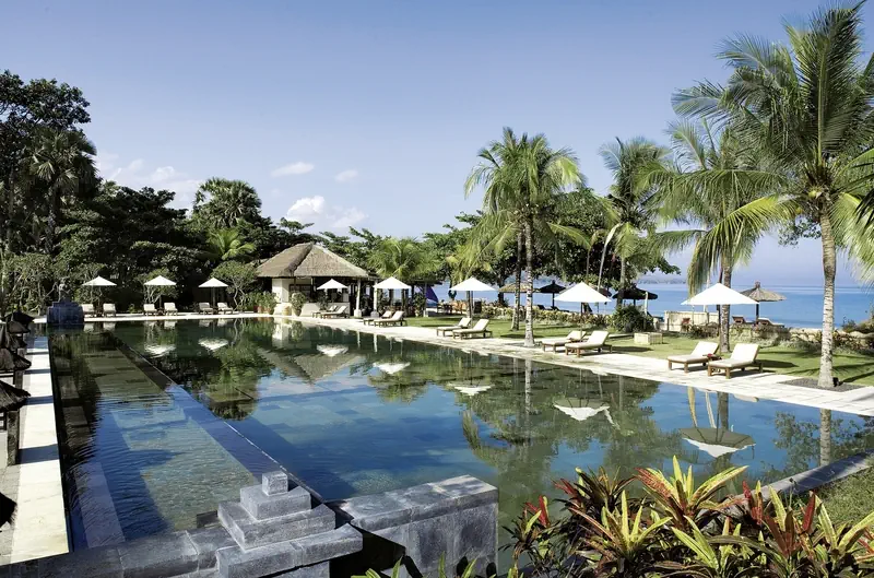 kategoria lokalna: 5 gwiazdka język obcy w hotelu: angielski, indonesisch liczba budynków: 57, liczba mieszkań: 57 metody płatności: American Express, MasterCard, Visa, Diners Club luksusowy, elegancki, z przyjemną atmosferą 24 godzinna recepcja lobby, przechowalnia bagażu Wi-Fi, w całym budynku butik biblioteka pojemniki do recyklingu w całym hotelu, Wykorzystanie regionalnych materiałów budowlanych, Energooszczędne oświetlenie, Korzystanie z czujników ruchu i automatycznych wyłączników czasowych 2 restauracja à la carte: kuchnia lokalna, ryby/owoce morza, kuchnia śródziemnomorska, z tarasem 1 bar Zakup produktów regionalnych, Warzywa/owoc z własnej uprawy, Ograniczenie marnotrawstwa żywności 1 basen: parasol, leżaki, ręcznik plażowy taras, taras słoneczny, ogródDzieci - Jimbaran Puri Bali