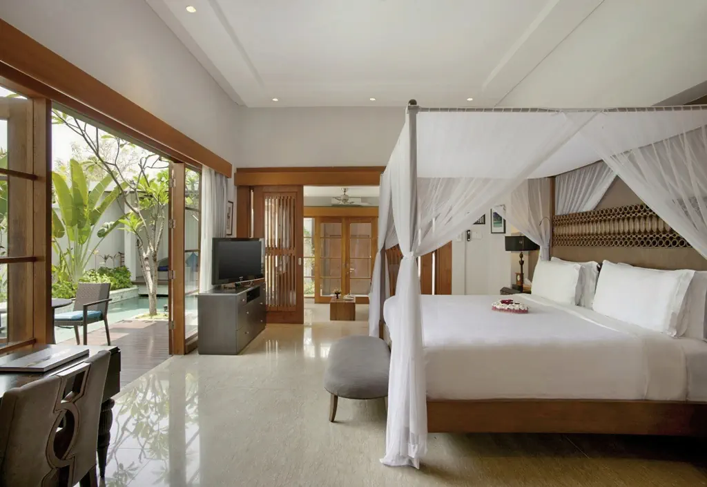 willa, od strony ogrodu, widok na ogród, 1 oddzielna sypialnia, 1 oddzielna sypialnia, kącik wypoczynkowy, biurko, kanapa, prysznic, wanna, prysznic zewnętrzny, szlafrok kąpielowy, kapcie kapielowe, suszarka do włosów, lusterko kosmetyczne, klimatyzacja, korytarz, minibar, wypełnienie regularnie, sejf, deska do prasowania, żelazko, 3 TVs (płaski ekran), kanał muzyczny, czajnik, kawa/herbata, taras (umeblowany), whirlpool, prywatny basen, w dniu przyjazdu w pokoju Kosz owoców, Butelka wina musującego1 Bedroom Royal Courtyard Villa (VX1) - The Samaya Bali