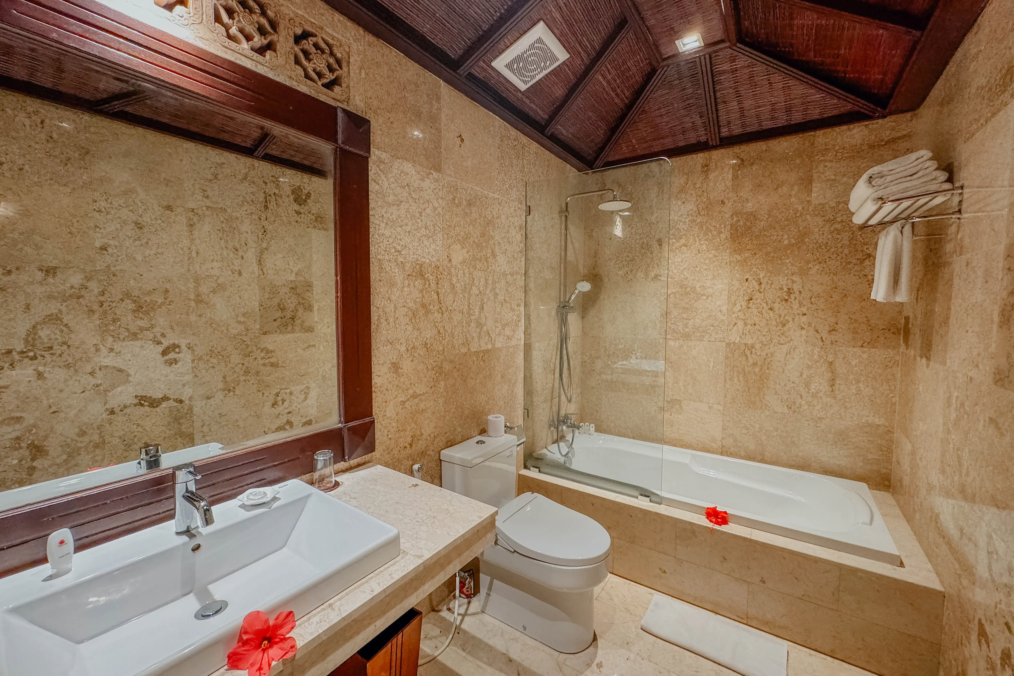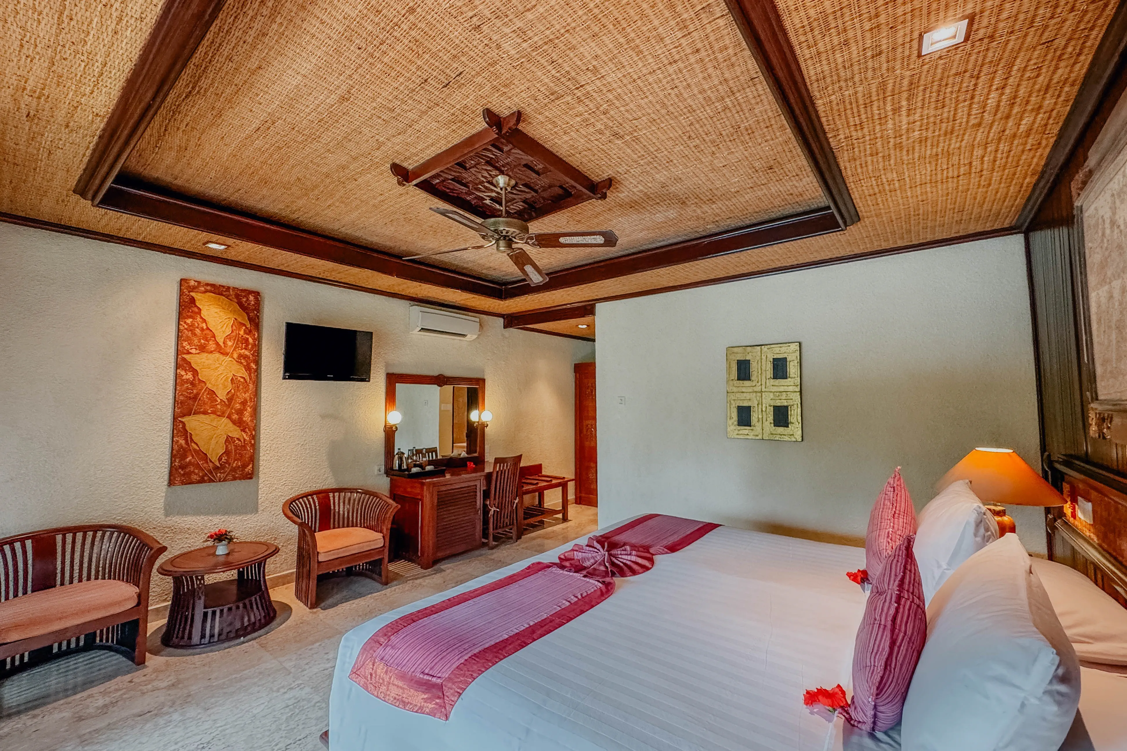Dla max. 3 osób, Przestrzeń zewnętrzna: Balkon lub taras, Kanały telewizji: Angielski, Telefon w pokoju, wanna i prysznic , Powierzchnia pokoju: ok. 56 m2, Dostawka: łóżko standardowe, Rodzaj podłogi: płytki, Sprzątanie codziennie, 1 sypialnia, Drzwi łączące między pokojami, Maksymalna liczba osób dorosłych: 3, Maksymalna liczba dzieci: 1, Widok na ogród, Liczba łazienek: 1, Liczba toalet: 1, Zestaw do parzenia kawy i herbaty, Klimatyzacja: Klimatyzacja indywidualnaPlaża - Tjampuhan