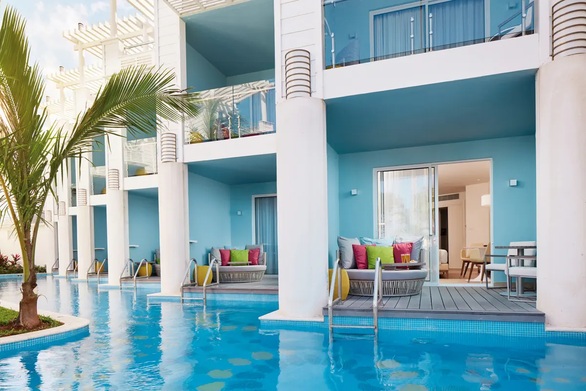 36-40 m², suita, widok na morze, połączony pokój dzienny i sypialnia, łóżko podwójne (king size), zestaw prysznicowy, WC, szlafrok kąpielowy, suszarka do włosów, lusterko kosmetyczne, klimatyzacja, minibar, napoje bezalkoholowe, piwo, woda, sejf, deska do prasowania, żelazko, TV, kawa/herbata, taras (umeblowany), menu poduszkoweDeluxe Swim Up Suite (UDQ) - Azul Sensatori Resort Jamaica