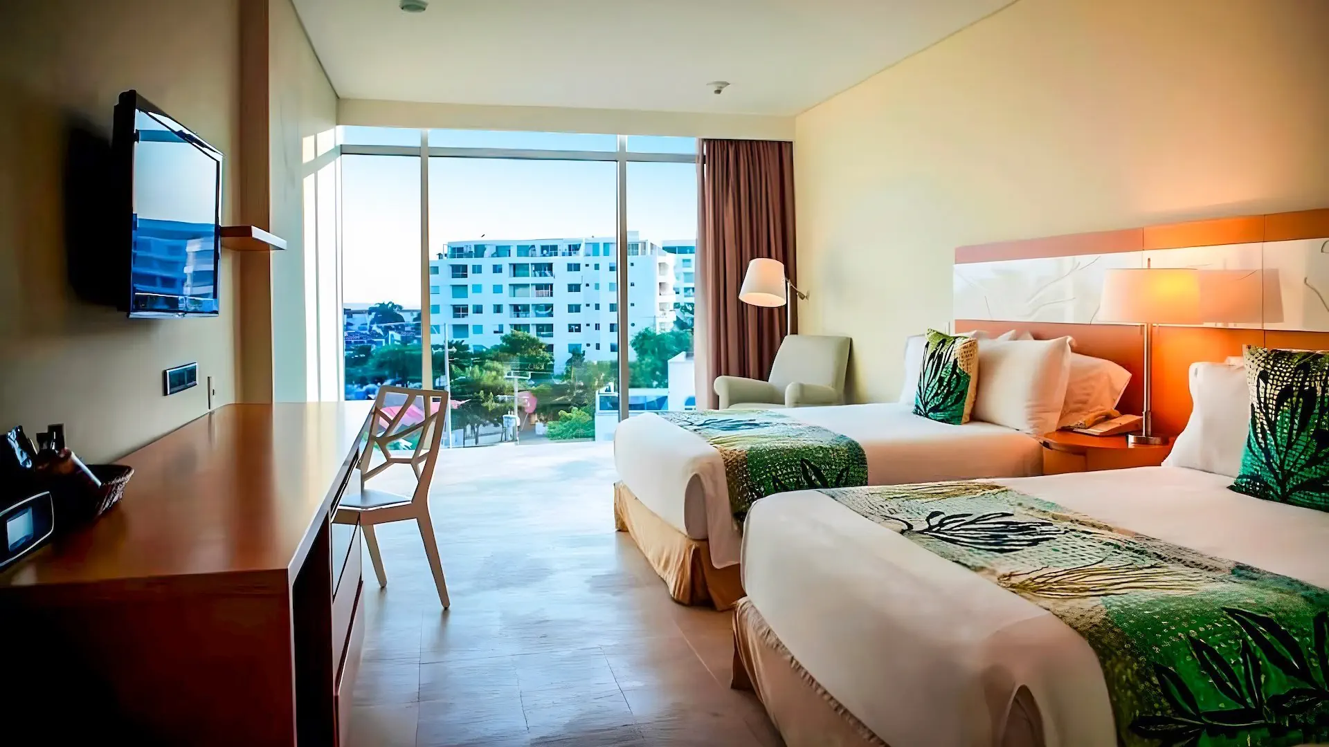 Ogólnie - pięciogwiazdkowy - zbudowany w 2011 r., regularnie odnawiany - część rozległego kompleksu Las Américas, do którego należą również hotele: Casa De Playa i Centro Internacional de Convenciones y Exposiciones - 279 pokoi, 10 pięter, 3 windy - przestronne lobby - całodobowa recepcja - usługi konsjerża - jubiler - sejf w recepcji - punkt wymiany walut - minimarket - drogeria - centrum konferencyjne dla maks. 5000 osób - ogród - bezpłatny internet bezprzewodowy - akceptowane karty kredytowe: Visa, MasterCard, American Express Basen - 7 basenów, w tym ze zjeżdżalnią, infinity na dachu (tylko dla dorosłych, 18+) i 4 baseny ułożone kaskadowo, słodka woda - 2 brodziki, słodka woda - przy basenach bezpłatne parasole i leżaki Sport i rozrywka - siłownia - plac zabaw dla dzieci - miniklub El Club del Capitán Estrella (4-12 lat) - animacje dla dorosłych i dzieci - za opłatą: 2 korty tenisowe z wypożyczalnią sprzętu i oświetleniem, nauka gry w tenisa z instruktorem, 18-dołkowy minigolf, nauka gry w golfa z instruktorem, sporty wodne na plaży Spa - 4 jacuzzi - za opłatą: sauna, masaże, zabiegi pielęgnacyjne na twarz i ciało Usługi Powyższe usługi są dodatkowo płatne. - room-service (24h) - opiekunka do dziecka (na zapytanie) - usługa prasowania - pralnia - wypożyczalnia rowerów Kontakt - 0057/6056723160 - www.hotellasamericas.com.coDostępne pokoje - Las Americas Torre Del Mar