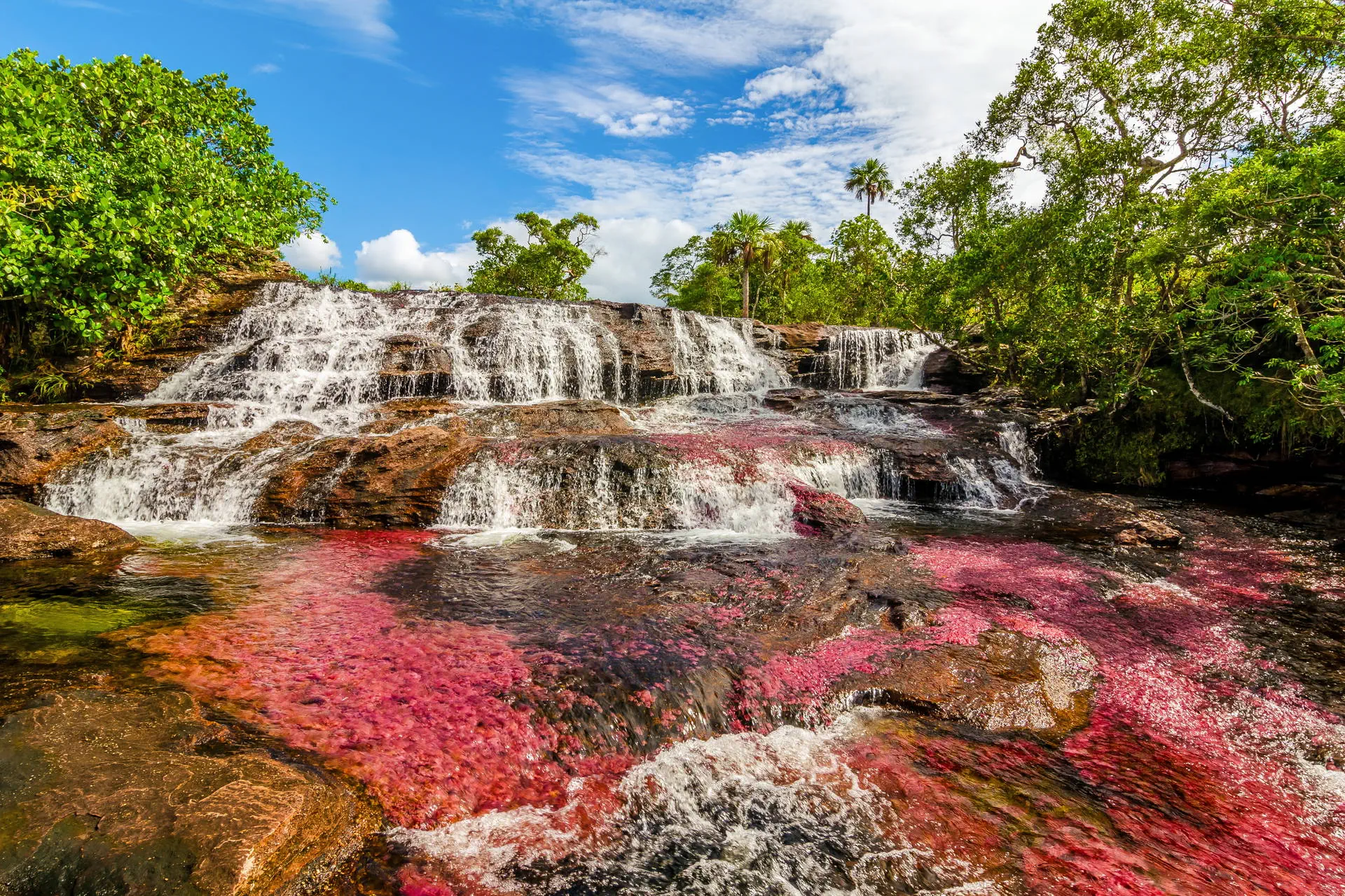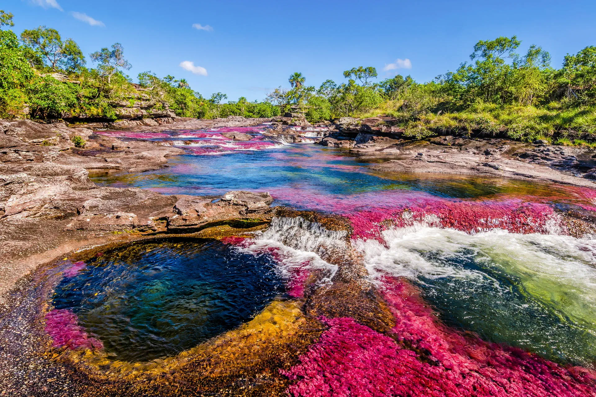 Śniadanie (możliwy breakfast box). Transfer na lotnisko i przelot do miejscowości La Macarena, przez którą przepływa niezaprzeczalnie najbardziej wyjątkowa atrakcja turystyczna Kolumbii – tęczowa rzeka Caño Cristales. Nieliczni do tej pory mieli okazję ją podziwiać, gdyż tereny na której jest położona, były okupowane przez partyzantkę FARC. Obecnie po zakończeniu wojny domowej, jest tu bezpiecznie, a my dzięki temu będziemy mogli być świadkami jednego z cudów natury. Rzeka zawdzięcza kolor endemicznej roślinie macarenia clavigera, która pod wpływem promieni słonecznej eksploduje różnymi odcieniami czerwieni i fioletu. W programie spacer na najważniejsze punkty widokowe. Zakwaterowanie. Kolacja i nocleg.