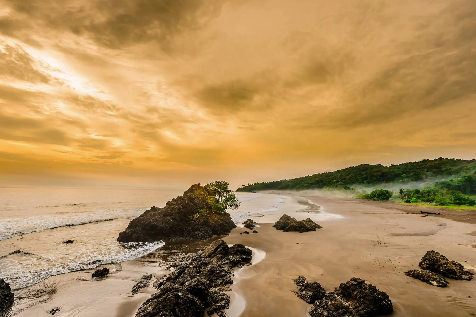 Śniadanie, wykwaterowanie z hotelu i dojazd na lotnisko. Przelot do Bahia Solano. Po wylądowaniu w tej niewielkiej miejscowości udamy się do wodospadu, który nazwano Lotnisko, gdyż znajduje się krótki spacer od lotniska. Region Bahia Solano znajduje się w departamencie Choco nad Pacyfikiem, znany z przepięknych plaż, gdzie dżungla spotyka się z oceanem. Można się tu dostać tylko samolotem, przez co zachował się tutaj klimat miejsca oddalonego od pędzącego świata. Można tu spokojnie wypocząć na jednej z przepięknych plaż. Wybierzemy się łódką do naszego hotelu w przy plaży Huina. Zakwaterowanie w hotelu, kolacja i nocleg. Dla chętnych po kolacji (dodatkowo płatny) nocny spacer po dżungli w poszukiwaniu zwierząt.