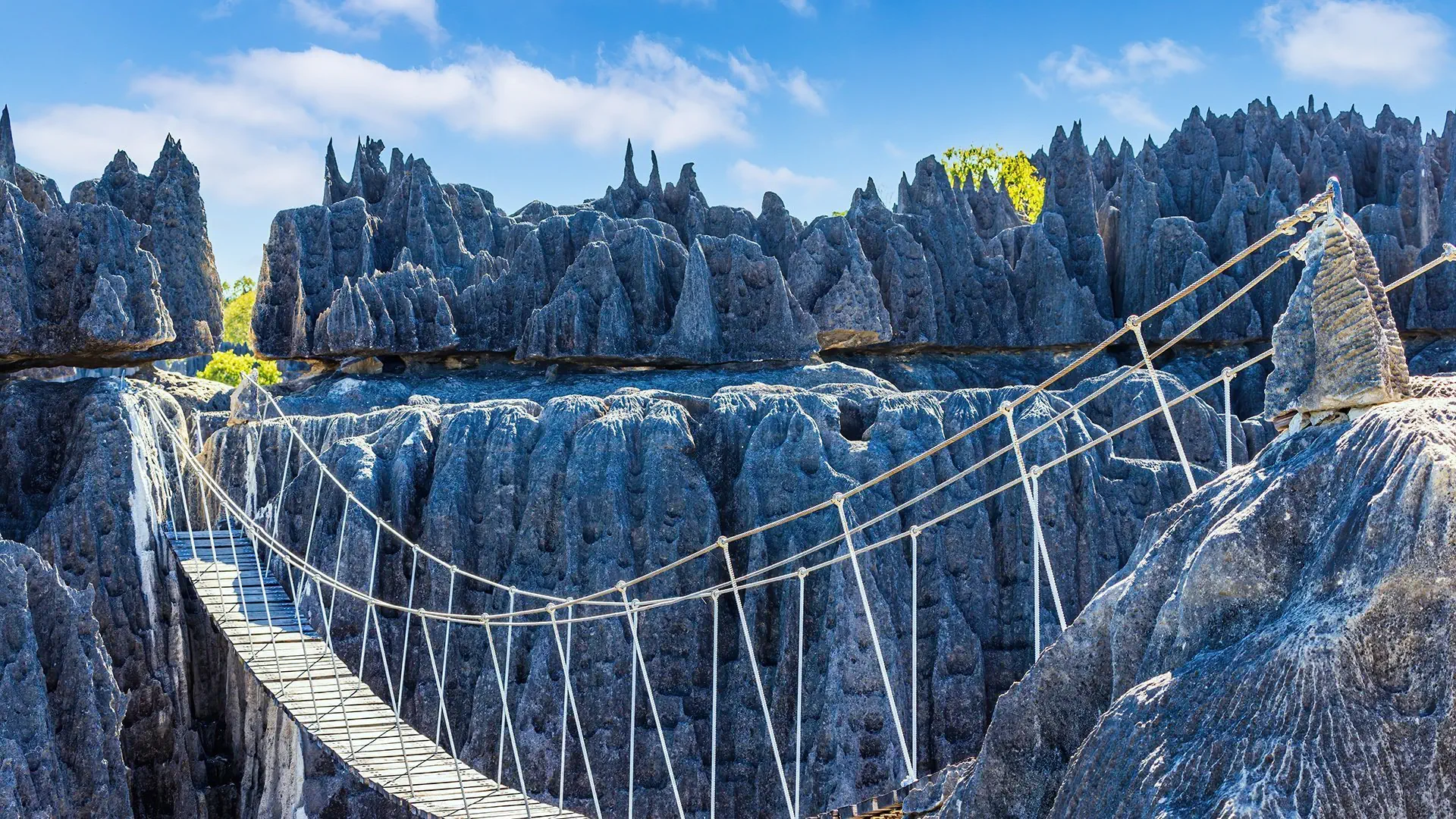 Śniadanie. Wykwaterowanie. Przejazd do portu, transfer motorówkami do ANKIFY, na główną wyspę Madagaskaru. Przejazd w kierunku PARKU NARODOWEGO ANKARANA. Obiad w lokalnej restauracji. Wizyta w parku – miejsce to jest jednym z dwóch na Madagaskarze, gdzie można podziwiać Tsingy. Aby odkryć tę niezwykłą formację skalną nie potrzeba specjalnego przygotowania fizycznego, mimo że niektóre fragmenty trasy wymagają podejścia pod górę i przechodzenia przez wąskie szczeliny. W nagrodę jednak podziwiać można nieskończone formacje skalne, które deszcz i wiatr rzeźbiły przez tysiące lat. Trasa wiedzie też przez drewniane kładki rozłożone pośród skał. Gdzieniegdzie w tym surowym krajobrazie dostrzec można roślinność z trudem przebijającą się przez skały. Wizyta w parku to również okazja do podziwiania majestatycznych baobabów. Zakwaterowanie w hotelu w AMBILOBE. Kolacja i nocleg.