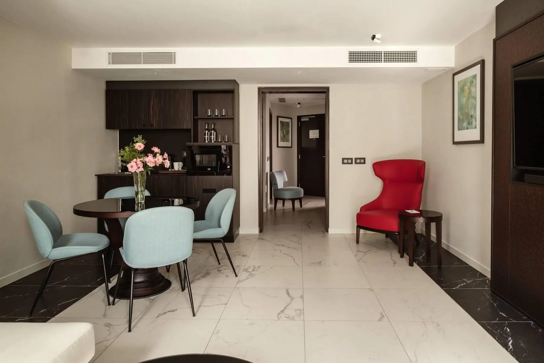 LOKALIZACJA - w miejscowości Valletta, ok. 350 m od turystycznego centrum, w pobliżu: ok. 280 m kino Embassy i fontanna Tritona, ok. 350 m Upper Barrakka Garden, ok. 450 m teatr Manoel, ok. 1 km od Narodowego Muzeum Wojny, ok. 6 km od Sliemy, ok. 8 km od lotniska na Malcie PLAŻA - ok. 1 km od hotelu publiczna, kamienista plaża Wuestenwinds, betonowa platforma do opalania, zejście do morza po schodach, bez serwisu plażowego HOTEL - miejski hotel, 5-piętrowy, 18 pokoi, 24h recepcja, lobby, 2 windy, taras, bar, przechowalnia bagażuWi-Fi w miejscach ogólnodostępnych bezpłatne POKOJE - Typu Standard - ok. 19-21 m2, dla 2 osób Wysposażenie standardowe: klimatyzacja, łazienka (WC, wanna/prysznic, suszarka do włosów), TV-sat, WiFi, sejf (płatny), ekspres do kawy na kapsułki (płatny)Inne dostępne pokoje: Superior: ok. 25 m2, dla 2 osób Deluxe: ok. 46 m2, dla 3 osóbOferta zawiera zdjęcia przykładowych pokoi. Uwaga! pokoje o podwyższonym standardzie - dostępne w systemie lub na zapytanie (większy metraż, superior, suite, z widokiem na morze/basen, delux itp. - dodatkowo płatne). Pokoje rodzinne/family (bez podwyższonego standardu) to pokoje z dostawką dla dzieci w postaci rozkładanej sofy, dwóch łóżek/rozkładanych foteli lub łóżka piętrowego. REKREACJA, SPORT, ATRAKCJE - zabiegi w Spa (płatne) Więcej informacji o hotelu: https://www.meliormalta.com/WYŻYWIENIE - Melior Boutique