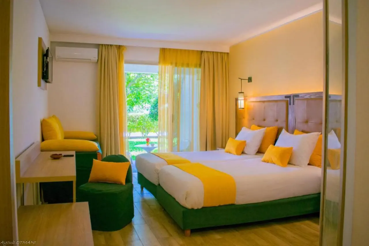 Double/ Twin Standard Room Garden View - pokój standardowy z widokiem na ogród lub basen; sypialnia, łazienka, ogrzewanie/klimatyzacja, balkon, Internet, sejf (za opłatą), TV sat. Powierzchnia - ok. 28 m kw. Triple Standard Room - pokój dla 3 osób, wyposażenie j.w. Family Room - pokój dla 4 osób (2+2)Wyżywienie - Adrar