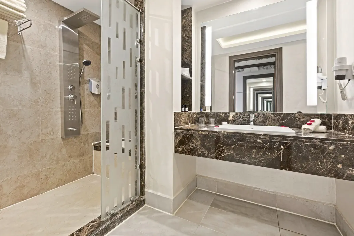 podwójny, deluxe, od strony morza, prysznic, WC, suszarka do włosów, klimatyzacja, mini lodówka, sejf, TV, czajnik, ekspres do kawy, balkon lub tarasWyżywienie - White Beach Resort Taghazout By Pickalbatros
