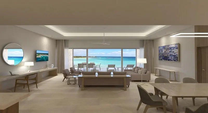 Junior suite - sypialnia, łazienka (prysznic, wanna z hydromasażem, suszarka, szlafroki, kapcie), wiatrak sufitowy, klimatyzacja, sejf, minibar, ekspres do kawy, sprzęt do prasowania, odpłatne Wi-Fi, balkon, taras lub balkon francuski (widok na ogrod).Wyżywienie - Hotel: Hotel Barceló Maya Riviera