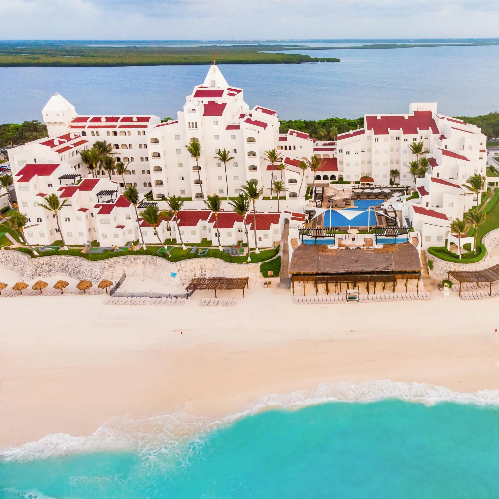 Ciekawie zaprojektowany, elegancki hotel przy plaży w Cancun. Śródziemnomorska architektura, wiele lokali gastronomicznych, rozrywka, zabawa, atrakcje dla dorosłych i dla dzieci.Położenie - GR Caribe By Solaris