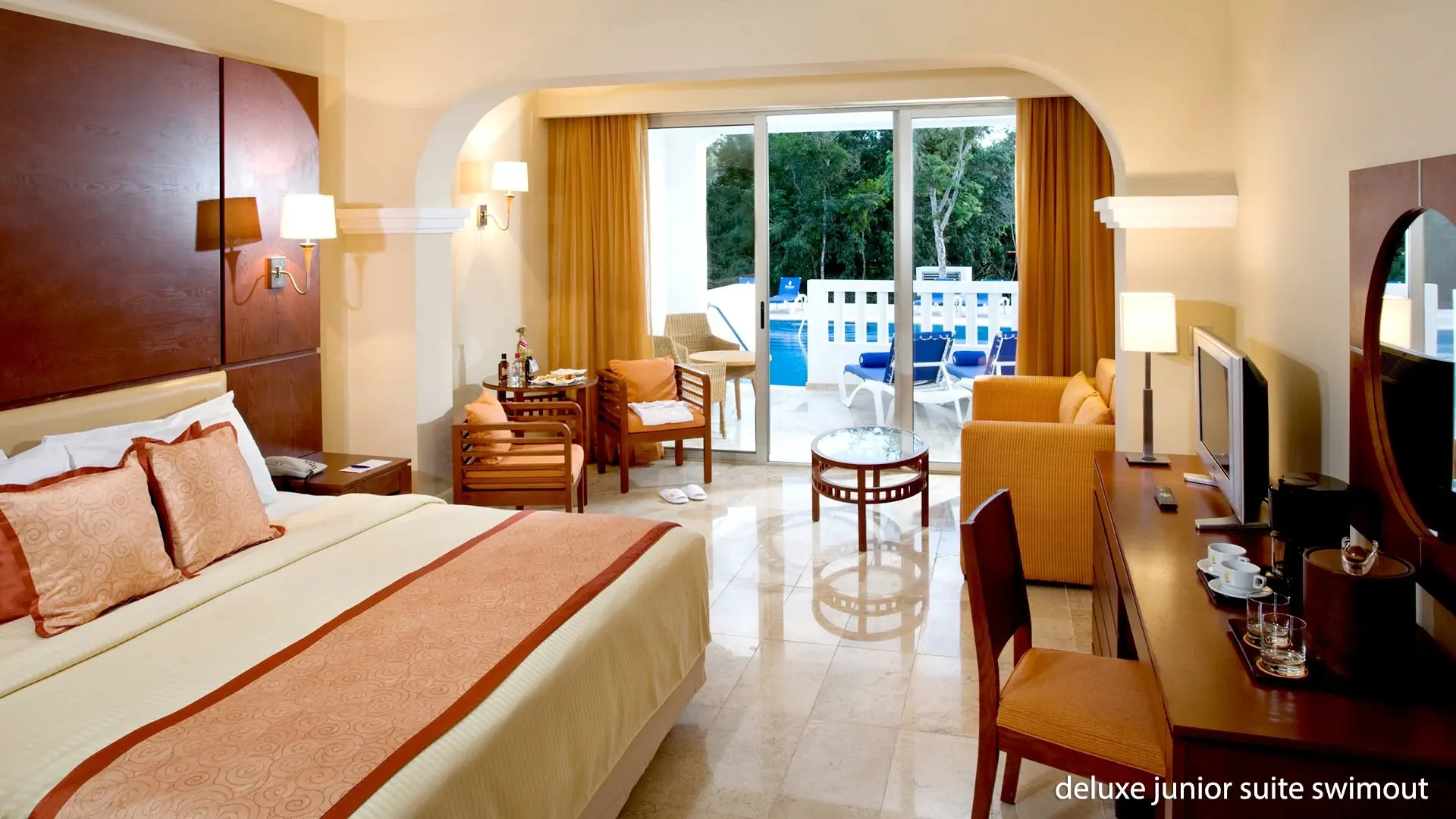 junior suite - 2-os. (możliwość 1 dostawki dla os. dorosłej lub 2 dzieci – rozkładana sofa) - ok. 56 m² - klimatyzowany - łazienka (wanna i prysznic, wc, suszarka) - telewizor - telefon - sejf - minibar (codziennie uzupełniany w wodę, napoje bezalkoholowe i piwo) - zestaw do prasowania - ekspres do kawy - balkon lub taras (stolik i krzesełka) deluxe junior suite swimout - 2-os. (możliwość 1 dostawki) - ok. 56 m² - klimatyzowany - łazienka (wanna i prysznic, wc, suszarka) - telewizor - telefon - sejf - minibar (codziennie uzupełniany w wodę, napoje bezalkoholowe i piwo) - zestaw do prasowania - ekspres do kawy - bezpośredni dostęp z tarasu do basenu współdzielonego z innymi pokojami - w deluxe junior suite swimout można zakwaterować dzieci od 13. roku życiaWyżywienie - Grand Riviera & Sunset Princess