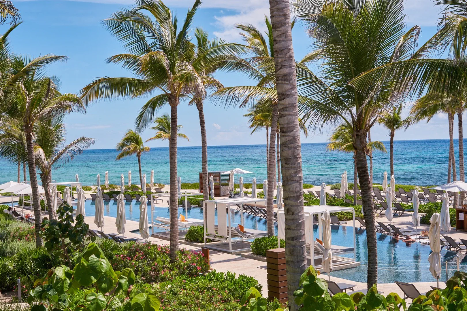 Viešas paplūdimys šalia viešbučio - smėlis - švelnus nuolydis į jūrą - nemokami skėčiai ir gultaiApie viešbutį - Hilton Tulum