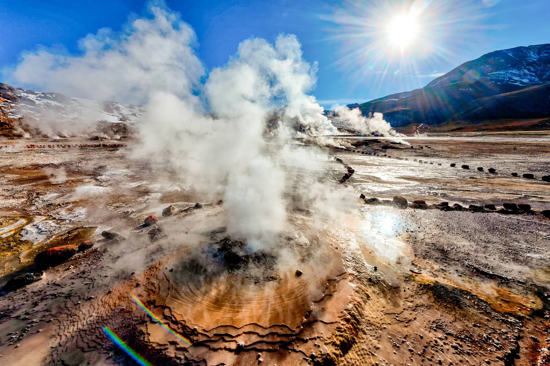 Przed świtem (breakfast box na drogę) przejazd na północ do jednej z największych atrakcji pustyni Atacama, gejzerów El Tatio. Są to jedne z najwyżej położonych gejzerów na świecie; znajdują się na wysokości ok. 4300 m n.p.m. i zdecydowanie najlepiej prezentują się wczesnym porankiem. Gejzery przypominają miniaturki wulkanów, które zamiast lawą tryskają gorącą wodą, a formy mineralne powstałe po odparowaniu wrzącej wody są niezwykle ciekawe. Następnie wyruszymy w kierunku Cordillera de la Sal, gdzie można podziwiać wspaniałe, naturalne formacje solne o niesamowitych kształtach. Kolejno przejazd do Doliny Księżycowej, która nazwę swą zawdzięcza iście kosmicznemu krajobrazowi: wysuszone jeziora i spękana od braku deszczu ziemia, przypominają Księżyc. Powrót do urokliwego miasteczka San Pedro. Kolacja i nocleg.