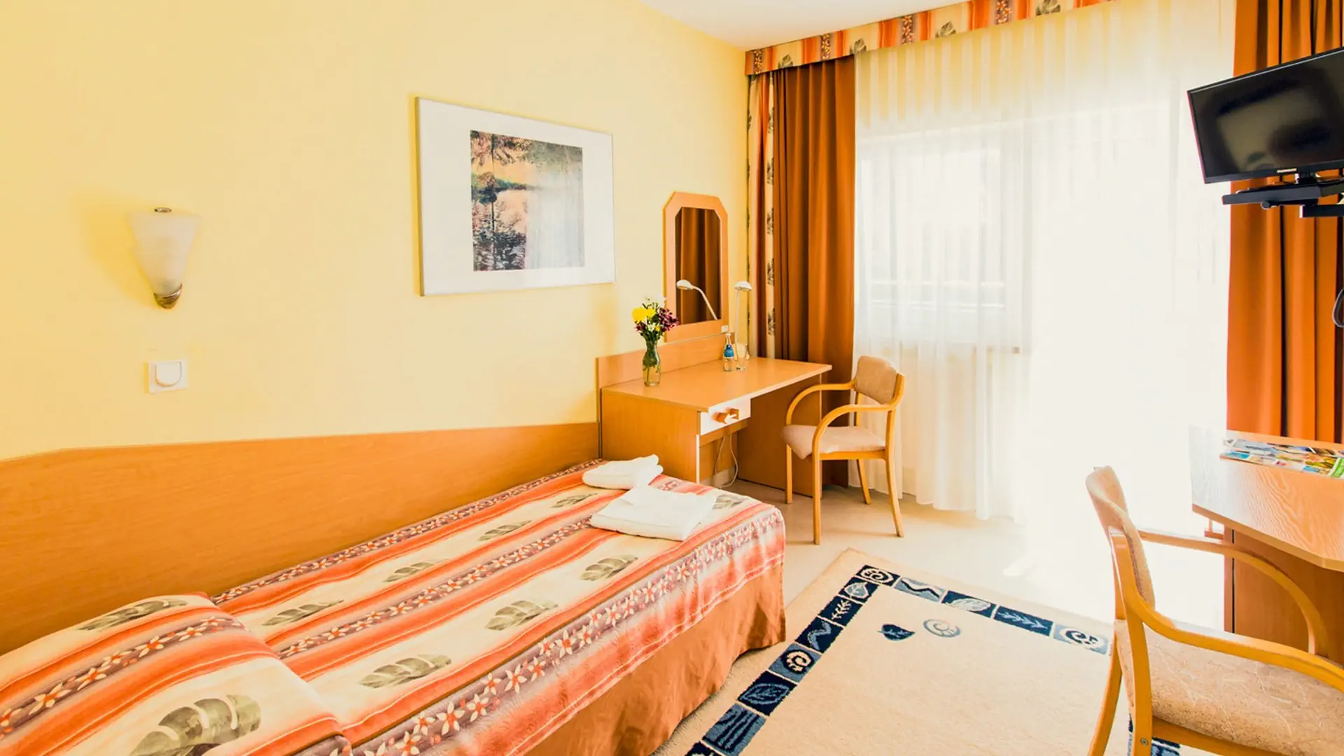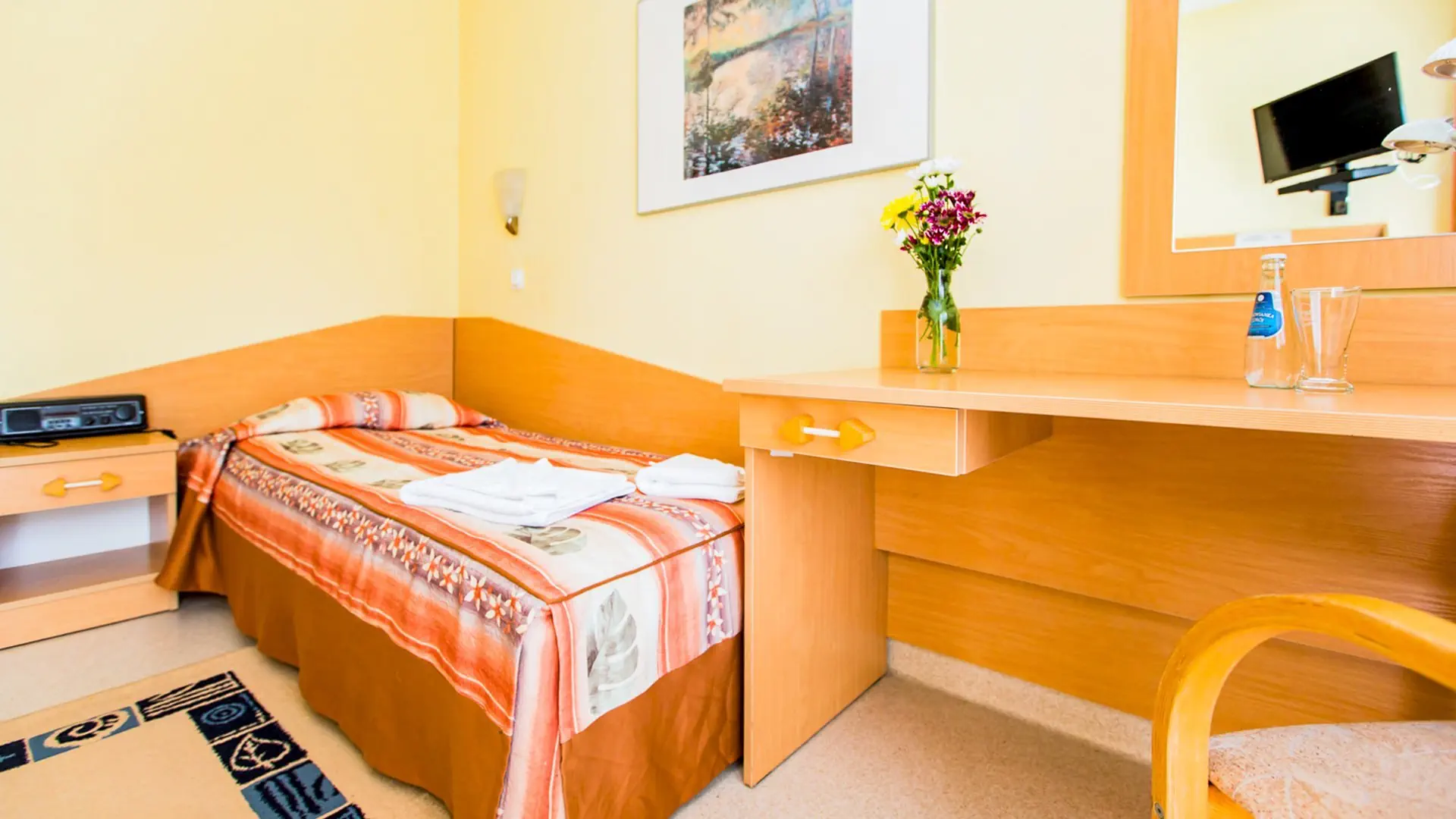 standardowy - 2-os. (możliwość 1 dostawki) - ok. 15 m² - łazienka (prysznic, wc, suszarka) - internet bezprzewodowy - telewizor - telefonWyżywienie - Geovita Jadwisin