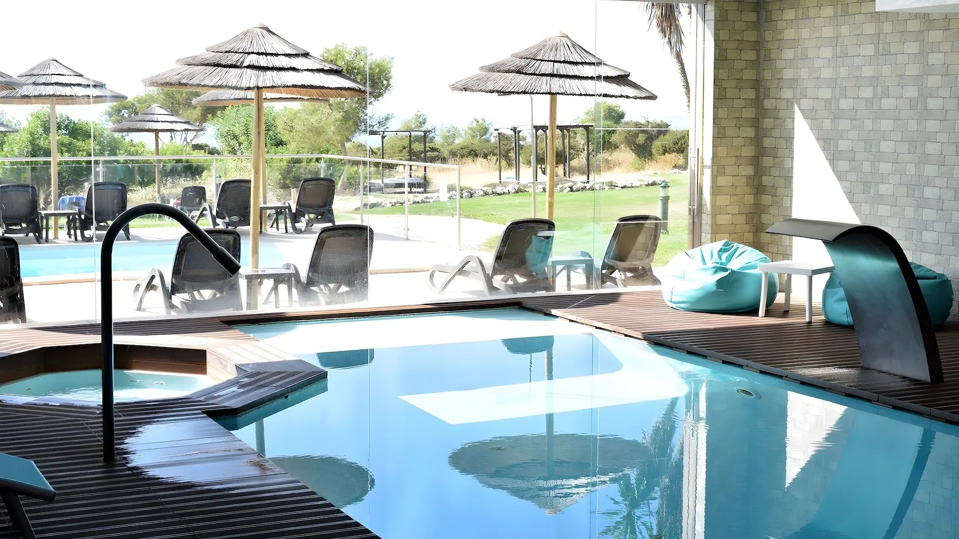 kambarių baseinas, maišytas vanduo, vaikų baseinas, maišytas vanduo, prie baseino nemokami skėčiai ir gultai; vaikų žaidimų aikštelė; SPA centras: nemokamai: uždaras baseinas, maišytas vanduo, terasa, treniruoklių salė; už papildomą mokestį: masažai, veido ir kūno nusileidimas laiptais.KONTAKTAI - Vila Alba Resort (ex. Suites Alba Resort & Spa)