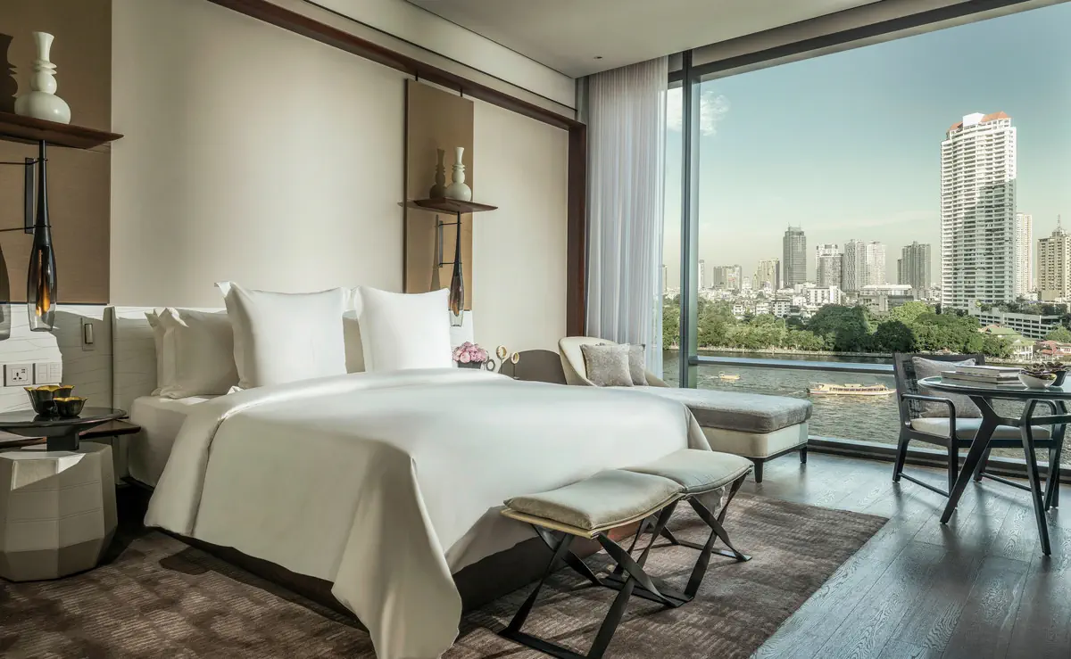 46-50 m², podwójny, deluxe, piętro, 3. lub 4. lub 5. lub 6. lub 7. lub 8. lub 9., widok na dziedziniec, połączony pokój dzienny i sypialnia, kącik wypoczynkowy, kanapa, łóżka podwójne (1 king size lub 1 łóżko podwójne), 1 łazienka, prysznic, wanna, 1 WC, oddzielne WC, szlafrok kąpielowy, suszarka do włosów, lusterko kosmetyczne, klimatyzacja, minibar płatne, sejf, 1 TV (satelitarna, płaski ekran), Wi-Fi, ekspres do kawy, kawa/herbata, Wysokiej klasy kosmetyki kąpielowe, nocny serwis turkusowy, liczba pokoi: 156, okno od podłogi do sufituDeluxe River View (UD3) - Four Seasons (Bangkok)