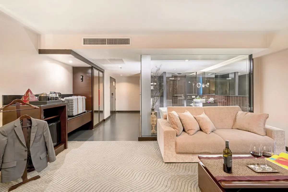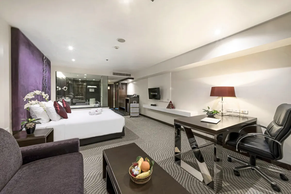 51-60 m², suita, oddzielna sypialnia, prysznic, wanna, suszarka do włosów, klimatyzacja, minibar, sejf, TV, odtwarzacz DVD, kawa/herbataWyżywienie - Furama Silom