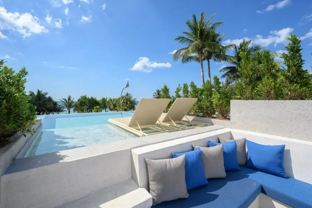 Deluxe - klimatyzacja, łazienka (wanna, prysznic, wc; suszarka, szlafroki, kapcie), internet, tv sat, telefon, zestaw do kawy/herbaty, sejf, odpłatnie - minibar, balkon (stolik i krzesełka), Ok. 34 m. kw. Widok w zależności od wybranej opcji pokoju.Wyżywienie - Thavorn Palm Beach Resort