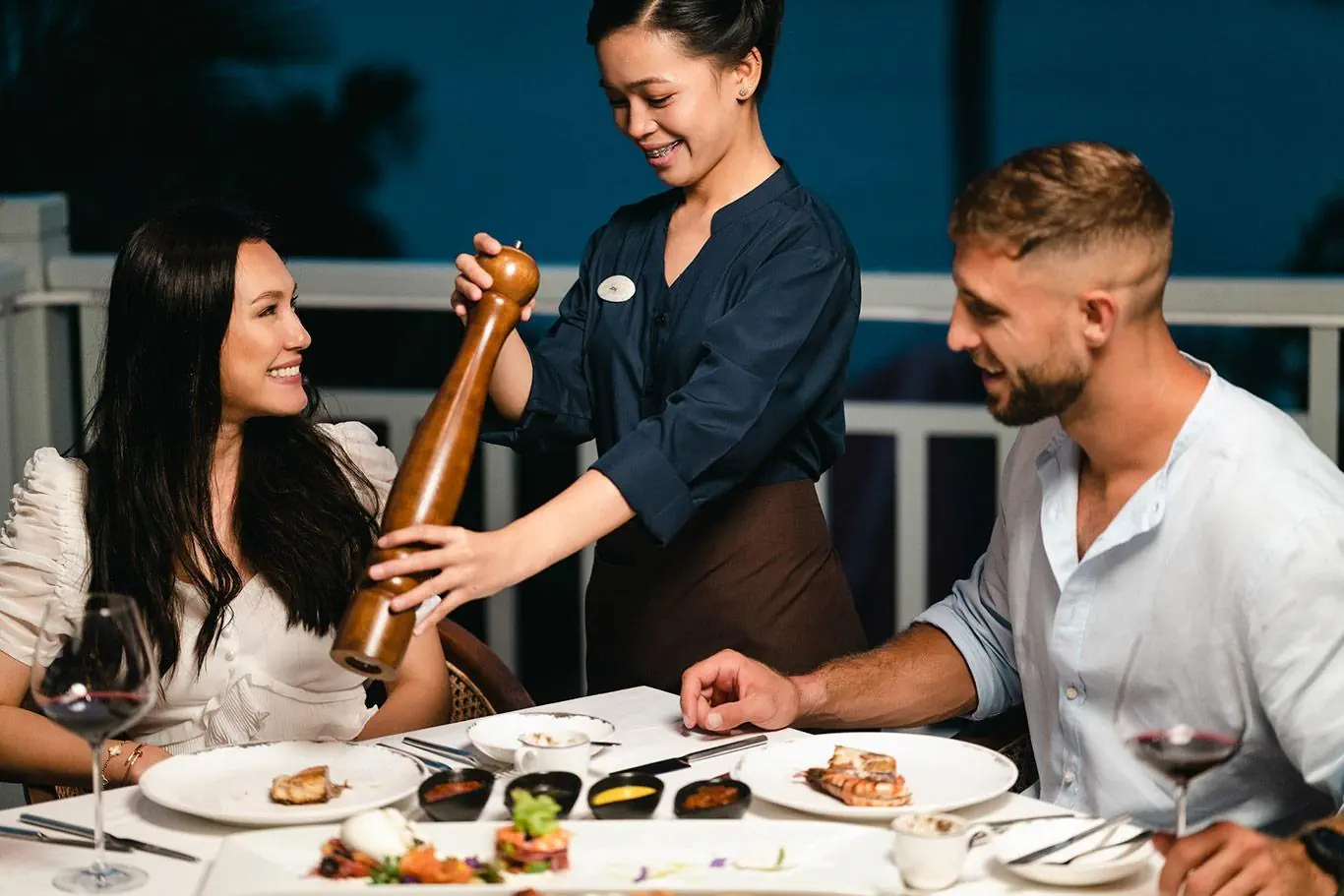 Dostępne warianty żywieniowe to nocleg ze śniadaniem i wyżywienie częściowe. Podawane na miejscu posiłki to śniadanie, obiad i kolacja. Dania dietetyczne, potrawy bezglutenowe, potrawy wegetariańskie i menu dla dzieci mogą być przygotowane na życzenie gościa. Dodatkowo w ofercie znajdują się inne opcje żywieniowe i piknik. Serwowane są napoje bezalkoholowe i napoje alkoholowe.Karty kredytowe - Amatara Resort & Wellness (ex Regent Cape Panwa)