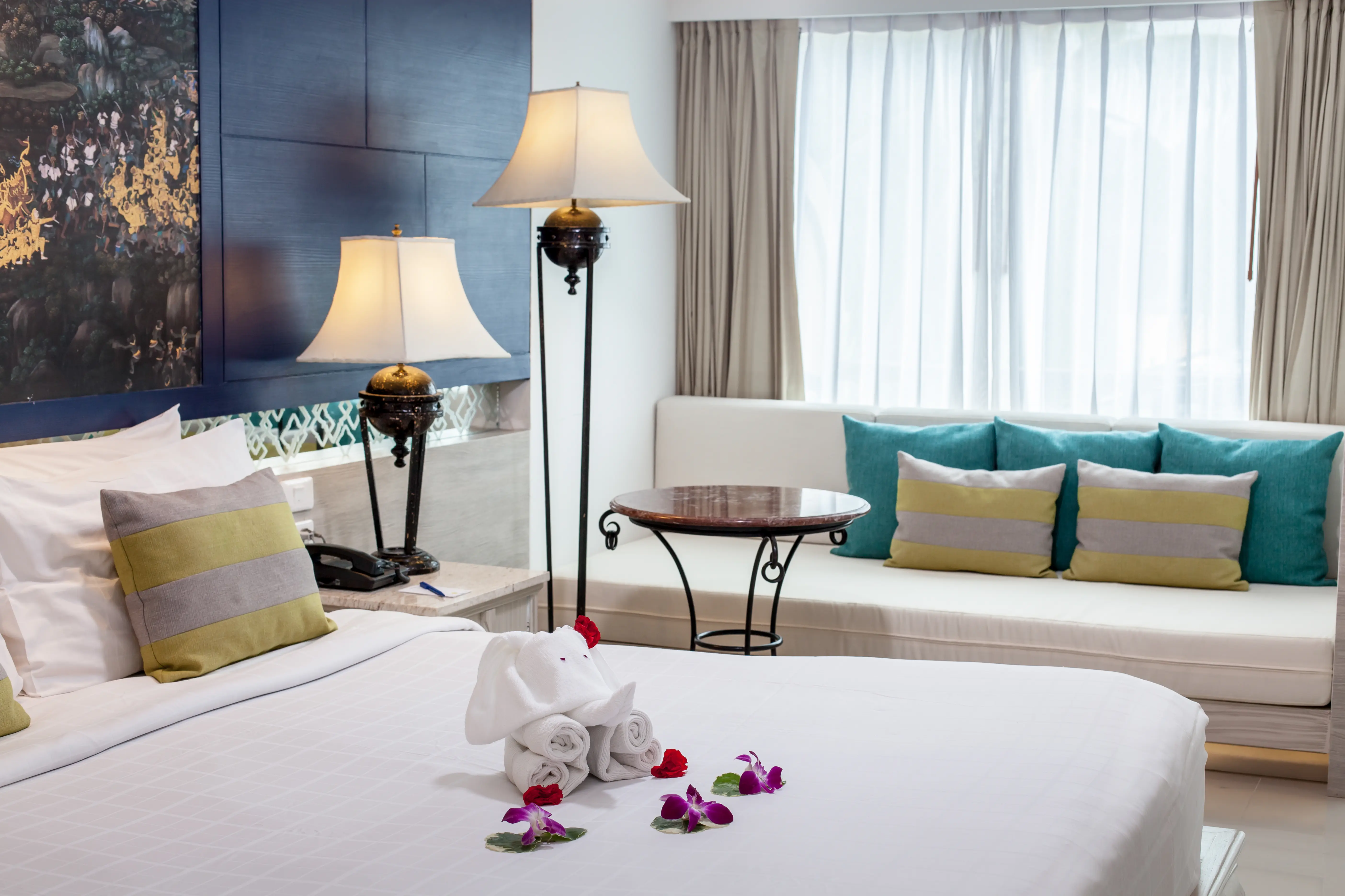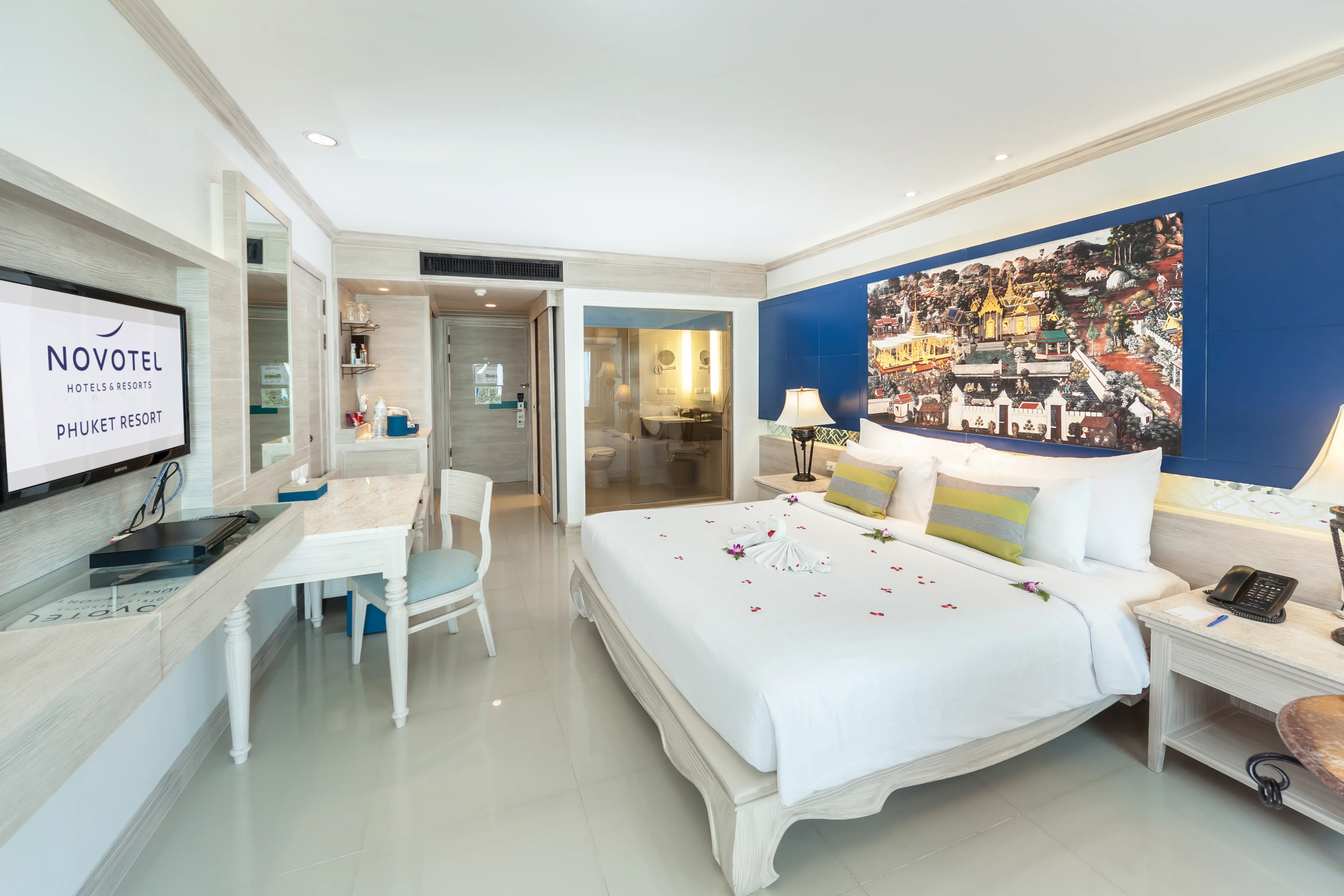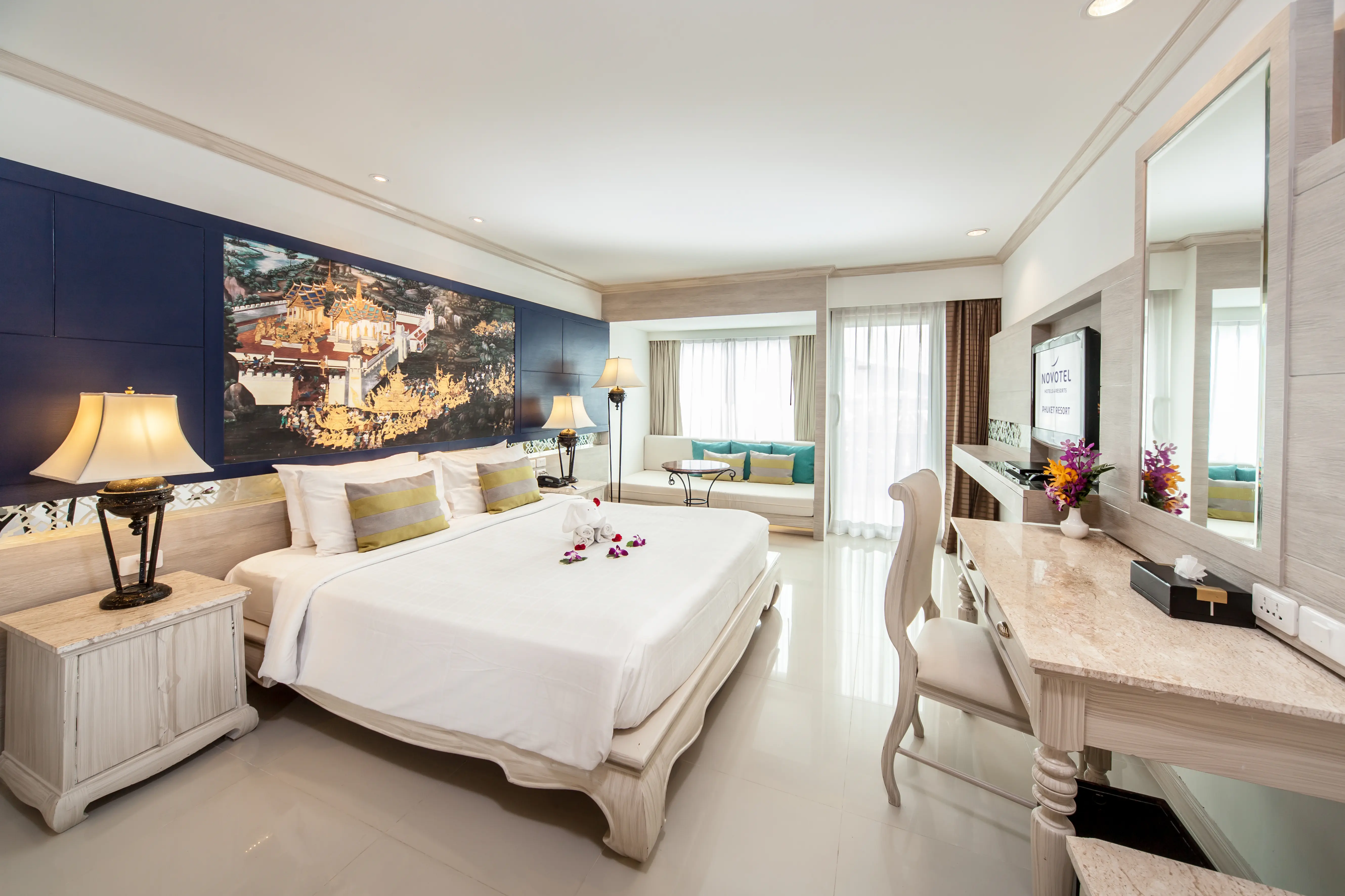 Śniadanie (06:30 - 10:30) - The Coffee House, stół szwedzki, Obiad (11:00 - 15:00) - The Coffee House, a la carte, Obiad (11:00 - 15:00) - V-Lounge, a la carte, Kolacja (18:30 - 22:30) - Ruen Thong Restaurant, a la carte, V Lounge (06:30 - 23:00) (06:30 - 23:00), bez limitu, Kuchnia: owoce morza , lokalna, międzynarodowa, Wymagana rezerwacja: Nie ¹⁾, The Hour Glass Lobby Bar (10:00 - 21:00), Napoje: alkohole lokalne, napoje bezalkoholowe (10:00 - 21:00), V lounge (10:00 - 21:00), Napoje: alkohole lokalne, napoje bezalkoholowe (10:00 - 21:00), Le Mirage Pool Bar (10:00 - 20:00), Napoje: alkohole lokalne, napoje bezalkoholowe (10:00 - 20:00), napoje bezalkoholowe, alkohole lokalne, wybrane alkohole importowane ¹⁾, pakiety dla nowożeńców ¹⁾, pakiety urodzinowe (na życzenie) ¹⁾, cukiernia ¹⁾, room service ¹⁾, Minibar w pokoju ¹⁾ ¹⁾ - dodatkowo płatneSuperior Room - Novotel Phuket Resort