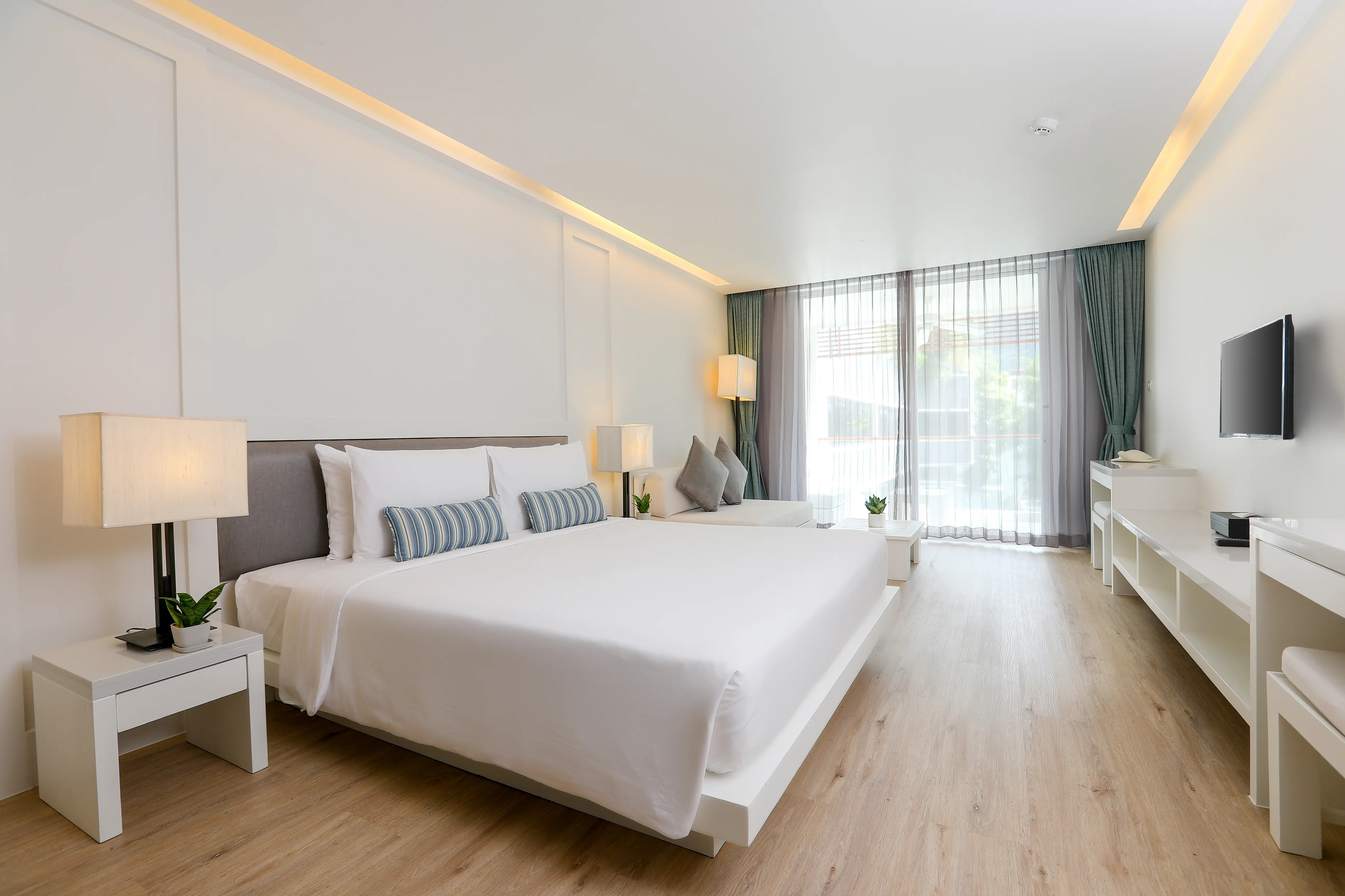 Dla max. 2 osób, Przestrzeń zewnętrzna: Balkon, Kanały telewizji: Angielski, Telefon w pokoju, prysznic, Powierzchnia pokoju: ok. 46 m2, Rodzaj podłogi: płytki, Sprzątanie codziennie, 1 sypialnia, Maksymalna liczba osób dorosłych: 2, Maksymalna liczba dzieci: 1, Widok na ogród i basen, Liczba łazienek: 1, Liczba toalet: 1, Zestaw do parzenia kawy i herbaty, Klimatyzacja: Klimatyzacja indywidualnaDayLight Family (One Bed Room) - The Nap