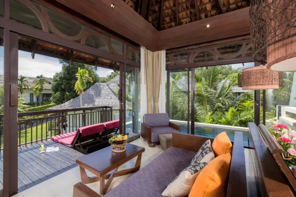Wille typu deluxe oferują unikalną scenerię i widok. Architektura została zaprojektowana z myślą o tej tropikalnej lokalizacji z wysokimi sufitami w celu zwiększenia przepływu powietrza i oknami o pełnej szerokości, dzięki którym natura może zająć centralne miejsce. Jest dużo miejsca do wypoczynku (70 m2) z częścią wypoczynkową, łóżkiem typu king-size lub dwoma pojedynczymi łóżkami (hollywood twin bed) oraz egzotyczną łazienką z wanną i zewnętrznym prysznicem. Umeblowany balkon. Wyposażenie klimatyzacja indywidualna, sejf (bezpłatny), zestaw do parzenia kawy/herbaty (bezpłatny), mini bar (płatny), TV, telefon, łazienka (wanna lub prysznic, WC), balkon lub taras. Wille z widokiem na morze za dopłatą.WYŻYWIENIE - The Vijitt Resort Phuket