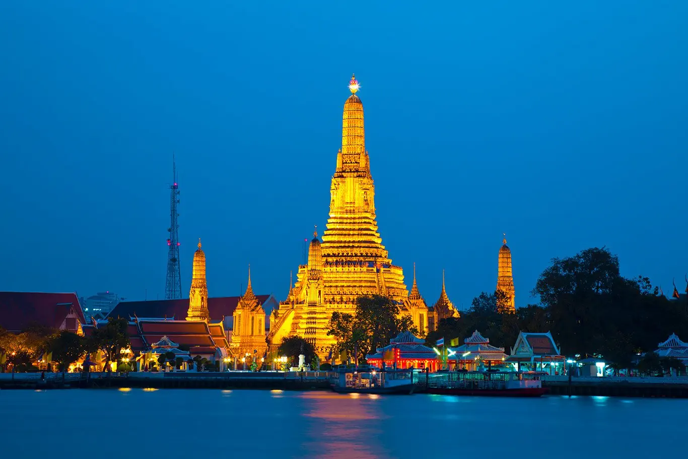 Po śniadaniu zwiedzanie najważniejszych zabytków stolicy Tajlandii znanymi jako "klejnoty Bangkoku". Zobaczymy słynącą z olbrzymiego posągu złotego Buddy świątynię Wat Traimit. Następnie Wat Phra Kheo i statua Szmaragdowego Buddy. Później skierujemy się w stronę Wielkiego Pałacu i zwiedzimy Wat Po - najstarszą buddyjską świątynię królewską w Bangkoku z ogromnym posągiem leżącego Buddy. Rejs łodzią po rzece Chao Praya i sieci kanałów prawobrzeżnej części miasta. Wizyta w fabryce wyrobów jubilerskich. Powrót do hotelu. Wieczorem kolacja na statku spacerowym po rzece Chao Phraya (fakultatywnie - ok. 1900 THB/os.). Nocleg w hotelu.Dzień 4. Bangkok (Rzeka Kwai).