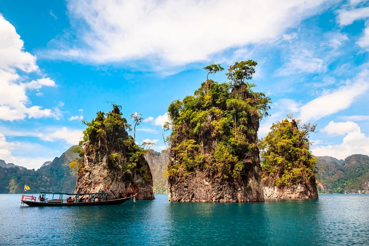 Śniadanie. Wykwaterowanie. Przejazd do przystani i przeprawa promowa do prowincji Surat Thani. Przejazd do PARKU NARODOWEGO KHAO SOK. Park zajmuje powierzchnię ok. 740 km², można tu zobaczyć pozostałości dziewiczego lasu tropikalnego, pokrywającego w przeszłości cały Półwysep Malajski. Las zamieszkuje wiele gatunków zwierząt, m.in. słonie, gibony, jelenie, tapiry. Jego centralną częścią jest jezioro Cheow Larn. Obiad. Wycieczka łodziami motorowymi po malowniczym jeziorze otoczonym stromymi wapiennymi skałami wyrastającymi do 500 m nad poziom wody. Przejazd do hotelu położonego w okolicy Parku Narodowego Khao Sok, zakwaterowanie, nocleg.