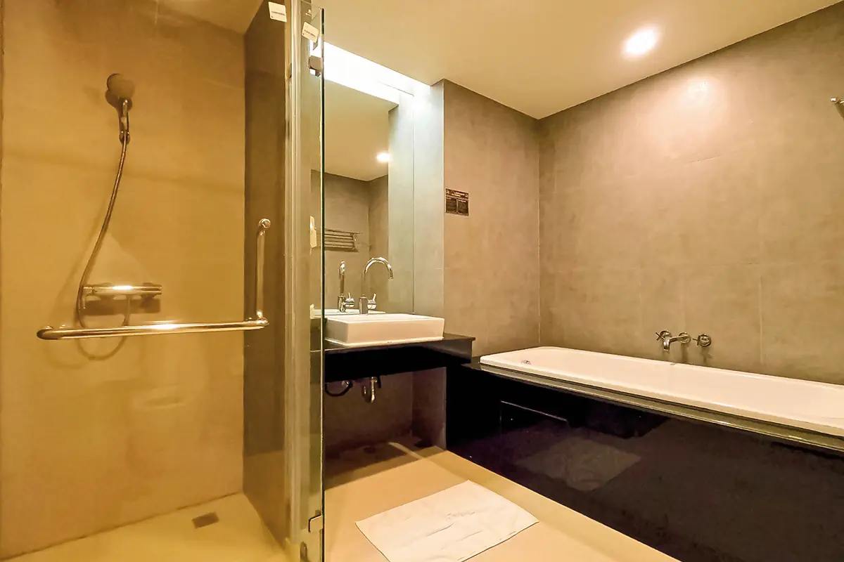 36-40 m², podwójny, biurko, kanapa, prysznic, wanna, kabina prysznicowa bez brodzika, suszarka do włosów, klimatyzacja, sejf, TV (satelitarna, płaski ekran), Wi-Fi, płatne, kawa/herbata, balkon (umeblowany), liczba pokoi: 90Seaside Deluxe Building - Seaside Wing (UDC) - Koh Chang Kacha Resort