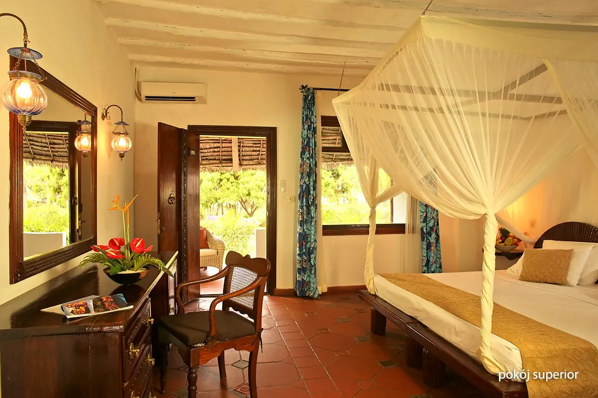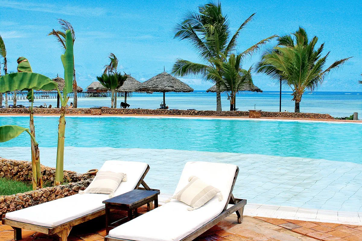 Ogólnie - czterogwiazdkowy - zbudowany w 1996 r., odnowiony w latach 2006-2007 (część pokoi, molo) - 120 pokoi w bungalowach, 28 budynków, 1 piętro - przestronne lobby - całodobowa recepcja - sejf w recepcji - taras z widokiem na ocean - ogród - bezpłatny internet bezprzewodowy w lobby i przy basenie - udogodnienia dla osób z niepełnosprawnościami - akceptowane karty kredytowe: Visa, MasterCard, American Express, Diners Club Sport i rozrywka - 2 korty tenisowe z oświetleniem (dodatkowo płatne) i wypożyczalnią sprzętu - łucznictwo - siatkówka plażowa - piłka plażowa - pokój zabaw dla dzieci - piano-bar - wieczory muzyczne (1-2 razy w tygodniu) - muzyka na żywo podczas kolacji (raz w tygodniu) - za opłatą: centrum wellness, sporty wodne na plaży (snurkowanie) Basen - basen, słona woda, nieregularny kształt, ok. 1000 m², gł. 0,5-3 m - wydzielona część dla dzieci, gł. 0,5 m - przy basenie bezpłatne parasole, leżaki, materace i ręczniki Usługi Powyższe usługi są dodatkowo płatne. - room-service - kantor Kontakt - 00255/242240251Dla dzieci - Dongwe Club