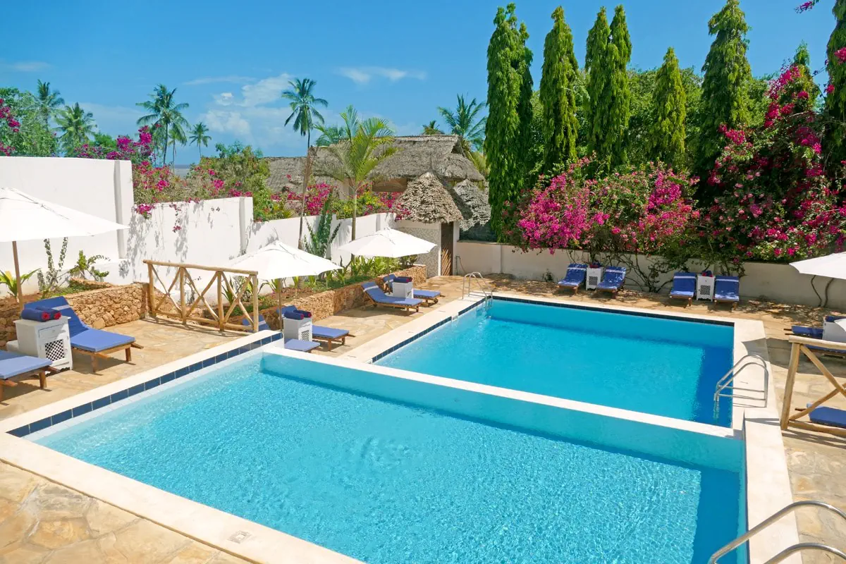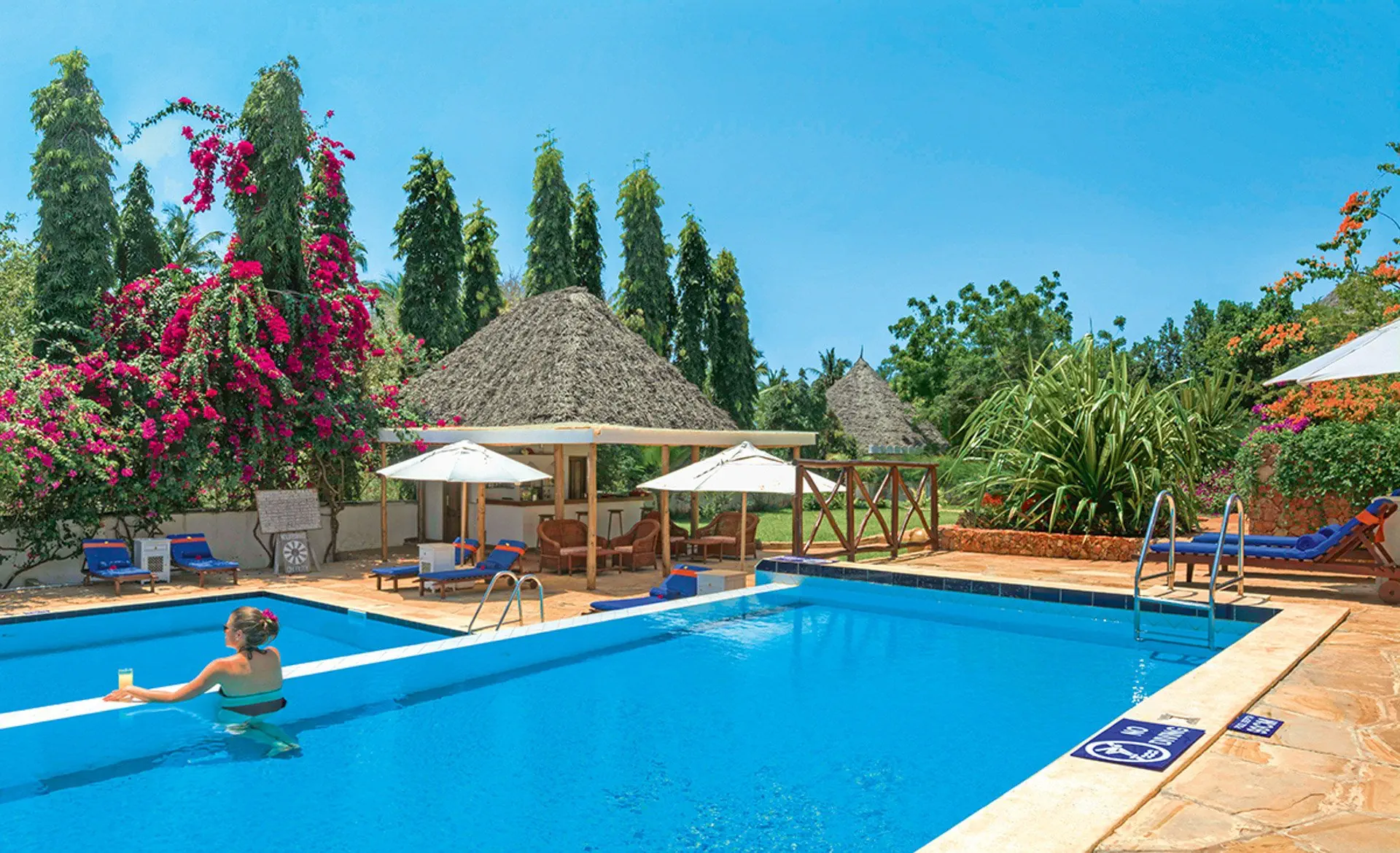 Restauracje - 2 restauracje: główna Mwambao, piękny widok na basen i ocean – dania w formie bufetu, kuchnia międzynarodowa, potrawy wegetariańskie, Kivuli – à la carte, przy plaży (płatna) - bar główny Mawimbi – przy basenie i Kivuli – na plaży (płatny) All inclusive - śniadanie (7.00-10.00) i kolacja (19.30-21.30) w formie bufetu w restauracji Mwambao, obiad (12.30-14.30) w formie bufetu w restauracji Mwambao - kawa, herbata, ciastka, przekąski w Casablanca Lounge (16.00-17.00) - napoje bezalkoholowe (9.00-24.00) i lokalne napoje alkoholowe (11.00-24.00) w wyznaczonym miejscu -