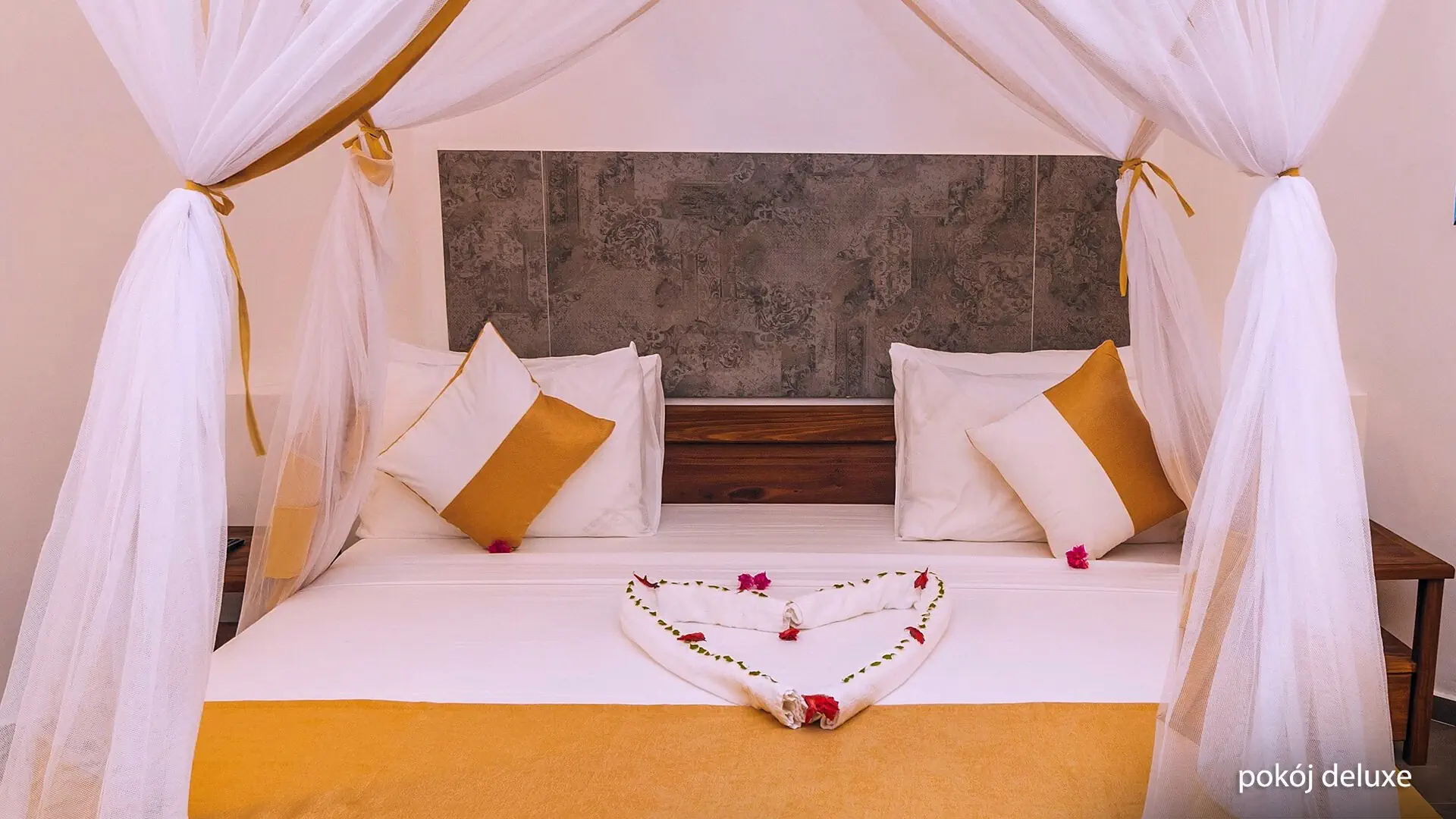 deluxe - 2-os. (możliwość 1 dostawki) - ok. 30 m² - klimatyzowany - łazienka (prysznic, wc, suszarka) - telewizja satelitarna - sejf - telefon - moskitiera - bezpłatne łóżeczko dla dziecka do 2 lat na zamówienie przed przyjazdem - balkon lub taras - widok na ogród - za opłatą: minibar rodzinny - 2-os. (możliwość 1 dostawki) - ok. 41 m² - klimatyzowany - łazienka (prysznic, wc, suszarka) - telewizja satelitarna - sejf - telefon - moskitiera - bezpłatne łóżeczko dla dziecka do 2 lat na zamówienie przed przyjazdem - balkon lub taras - widok na morze - za opłatą: minibar deluxe z widokiem na basen - 2-os. (możliwość 1 dostawki) - ok. 30 m² - klimatyzowany - łazienka (prysznic, wc, suszarka) - telewizja satelitarna - sejf - telefon - moskitiera - bezpłatne łóżeczko dla dziecka do 2 lat na zamówienie przed przyjazdem - balkon lub taras - widok na basen - za opłatą: minibarWyżywienie - Kilindini Resort & Spa