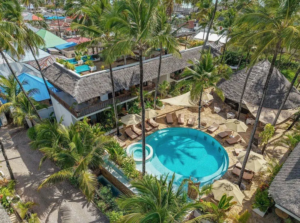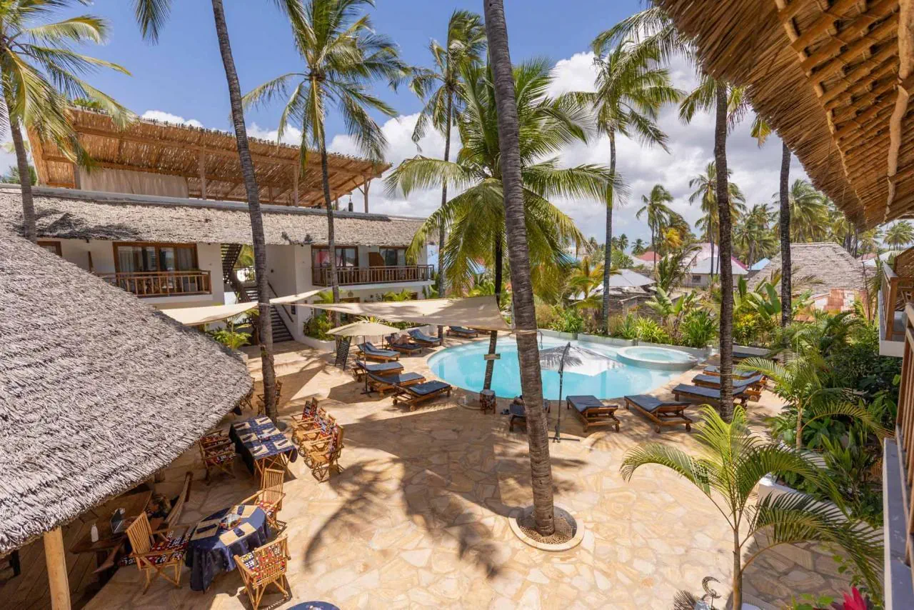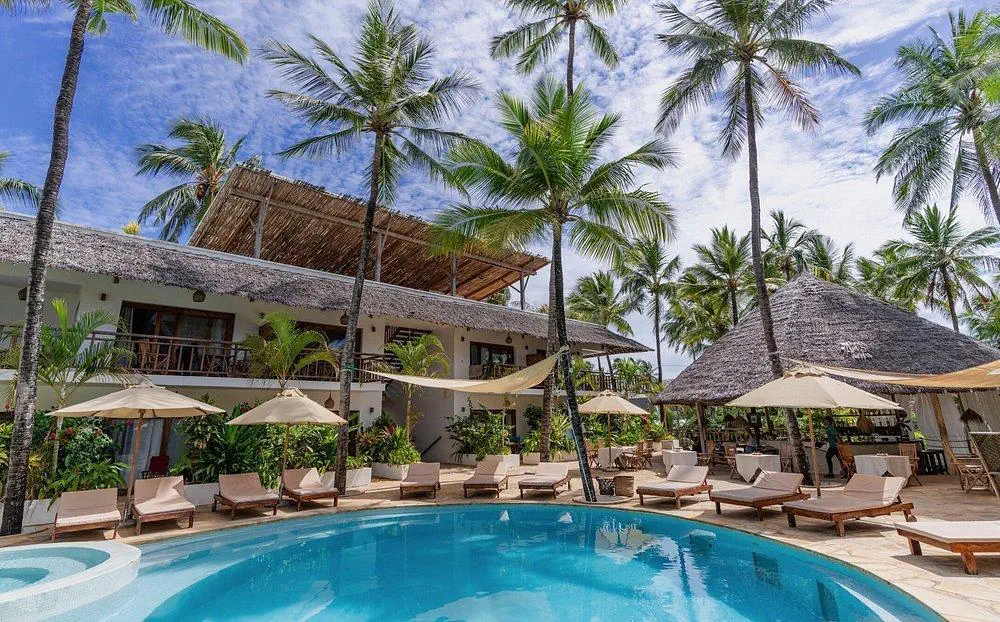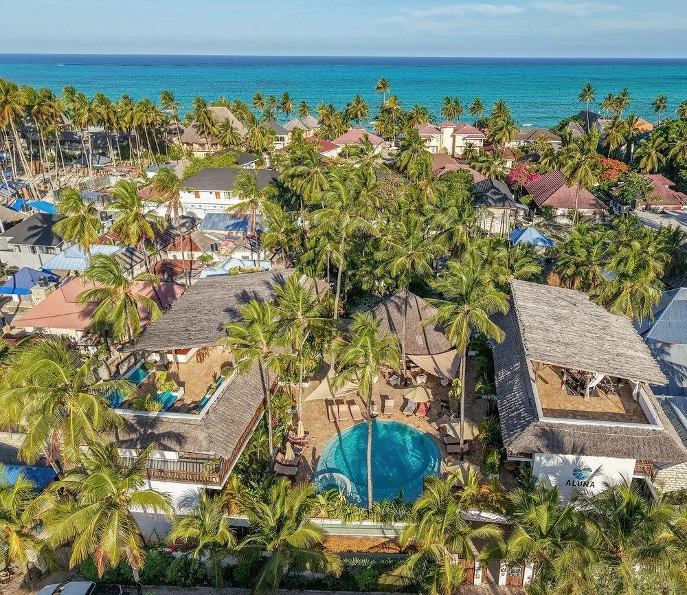 Uroczy, kameralny hotel z 18 pokojami, otoczony bujną, tropikalną roślinnością i nawiązujący stylem do lokalnych tradycji suahili. Panuje tu spokojna, relaksująca atmosfera, a egzotyczne pejzaże, basen, bliskość oceanu sprawiają, że jest to idealne miejsce na wypoczynek, również dla miłośników kitesurfingu.Położenie - Aluna Paje