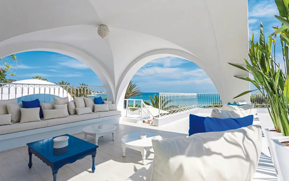 bezpośrednio przy plaży od centrum miejscowości: Hammamet, ok. 2 km od lotniska: Tunis (TUN), ok. 72 km od lotniska: Monastir (MIR), ok. 103 km od lotniska: Enfidha (NBE), ok. 50 km od pola golfowego: Golf Citrus, ok. 7 km centralne plaża piaszczysta: należący do kompleksu, parasol, leżaki, ręczniki plażowe, udogodnienie sanitarne (prysznic), udogodnienia sanitarne (WC) trawnik do opalania: należący do kompleksu molo do opalania: należący do kompleksuWyposażenie - Sindbad