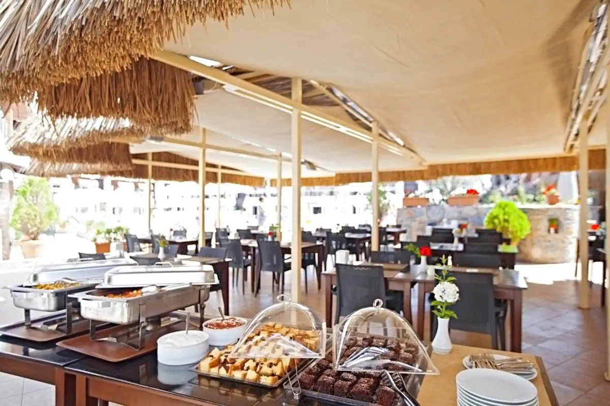 Restauracje - restauracja – dania w formie bufetu, kuchnia międzynarodowa, dostępne foteliki dla dzieci, dania wegetariańskie - snack bar przy basenie All inclusive - śniadanie (8.00-10.00), obiad (12.30-14.00), kolacja (19.00-21.00) w formie bufetu w restauracji głównej - kawa i ciastko w snack barze (16.30-17.30) - napoje bezalkoholowe i lokalne napoje alkoholowe w barze (10.00-23.00) - wymagane noszenie opasek all inclusive -