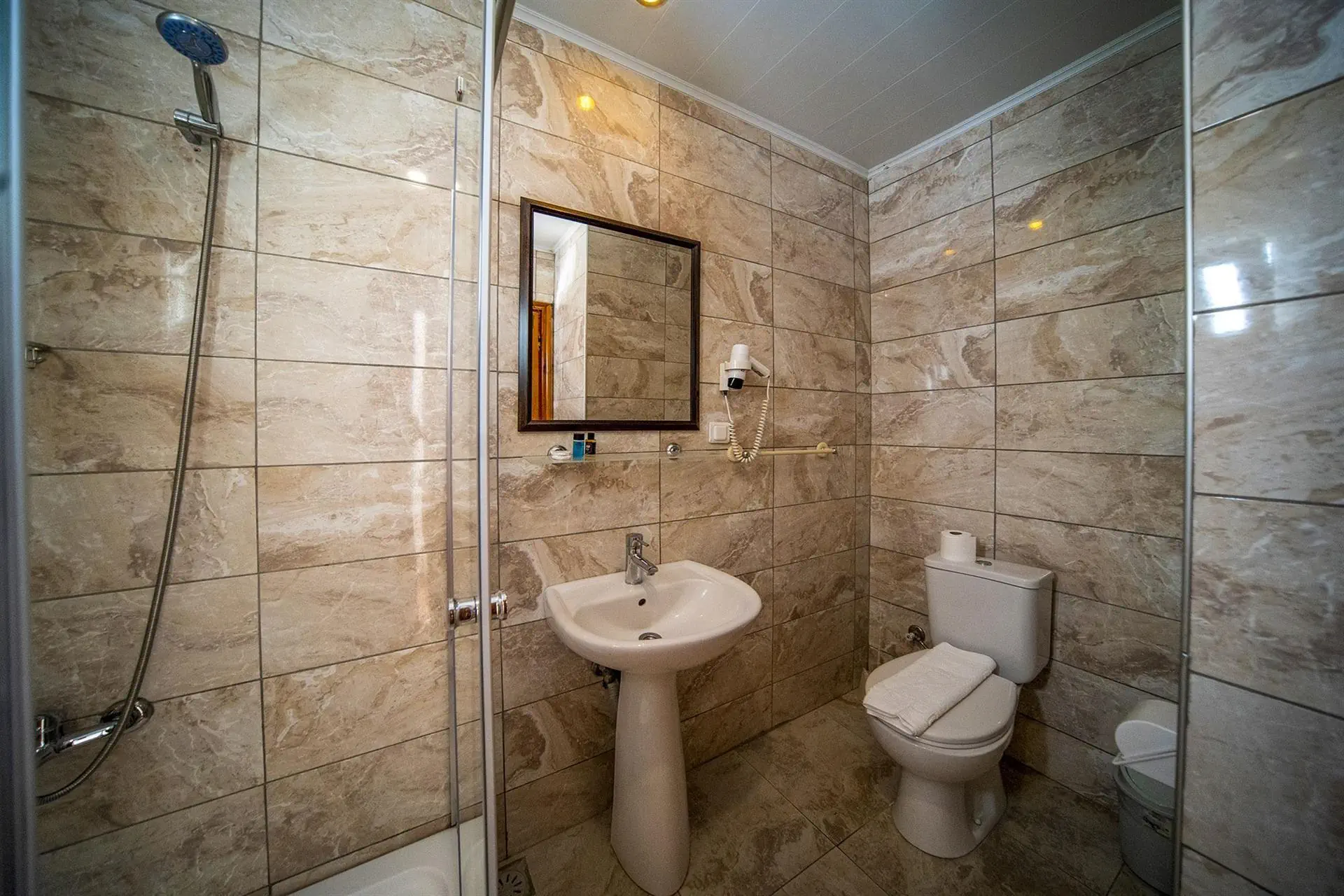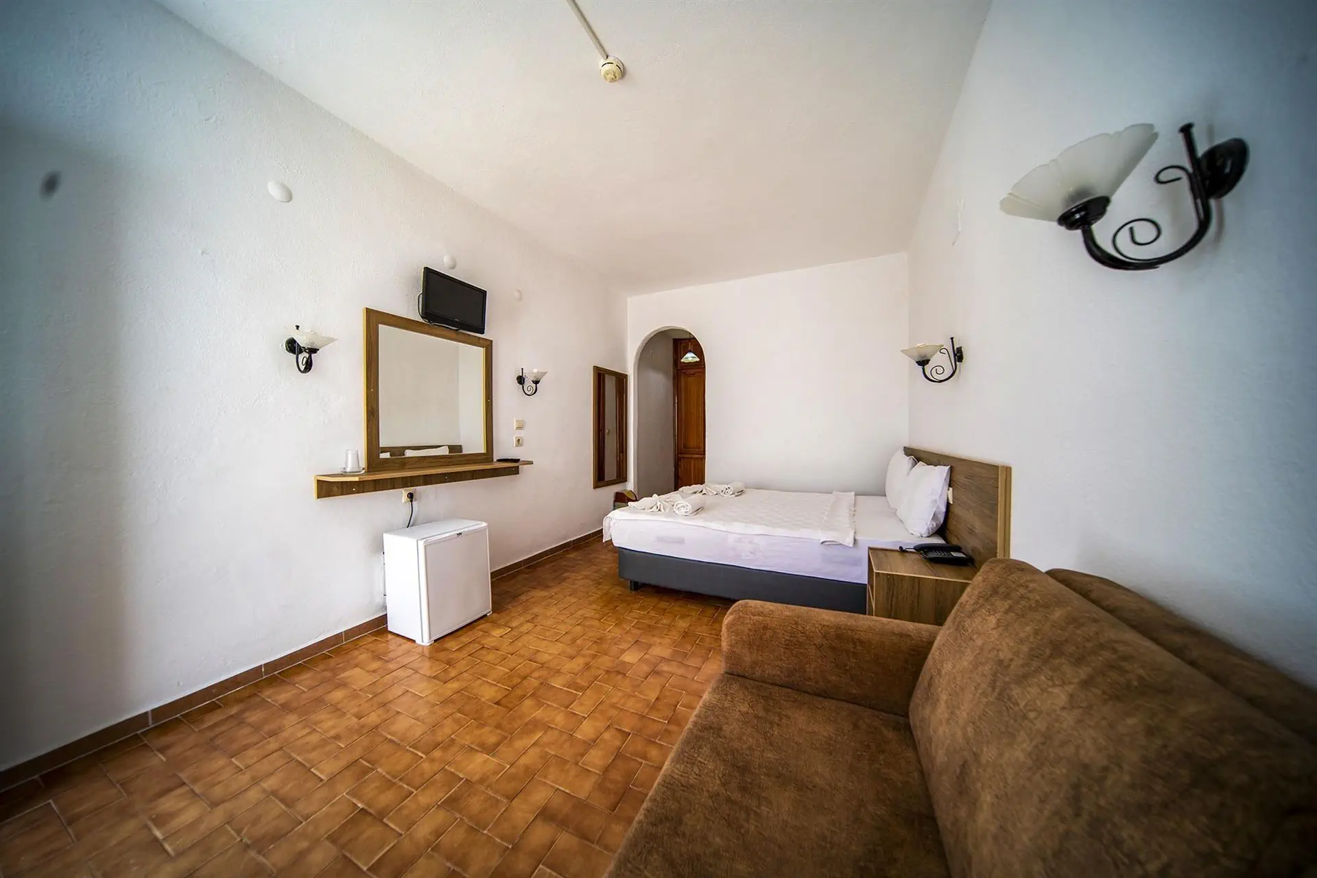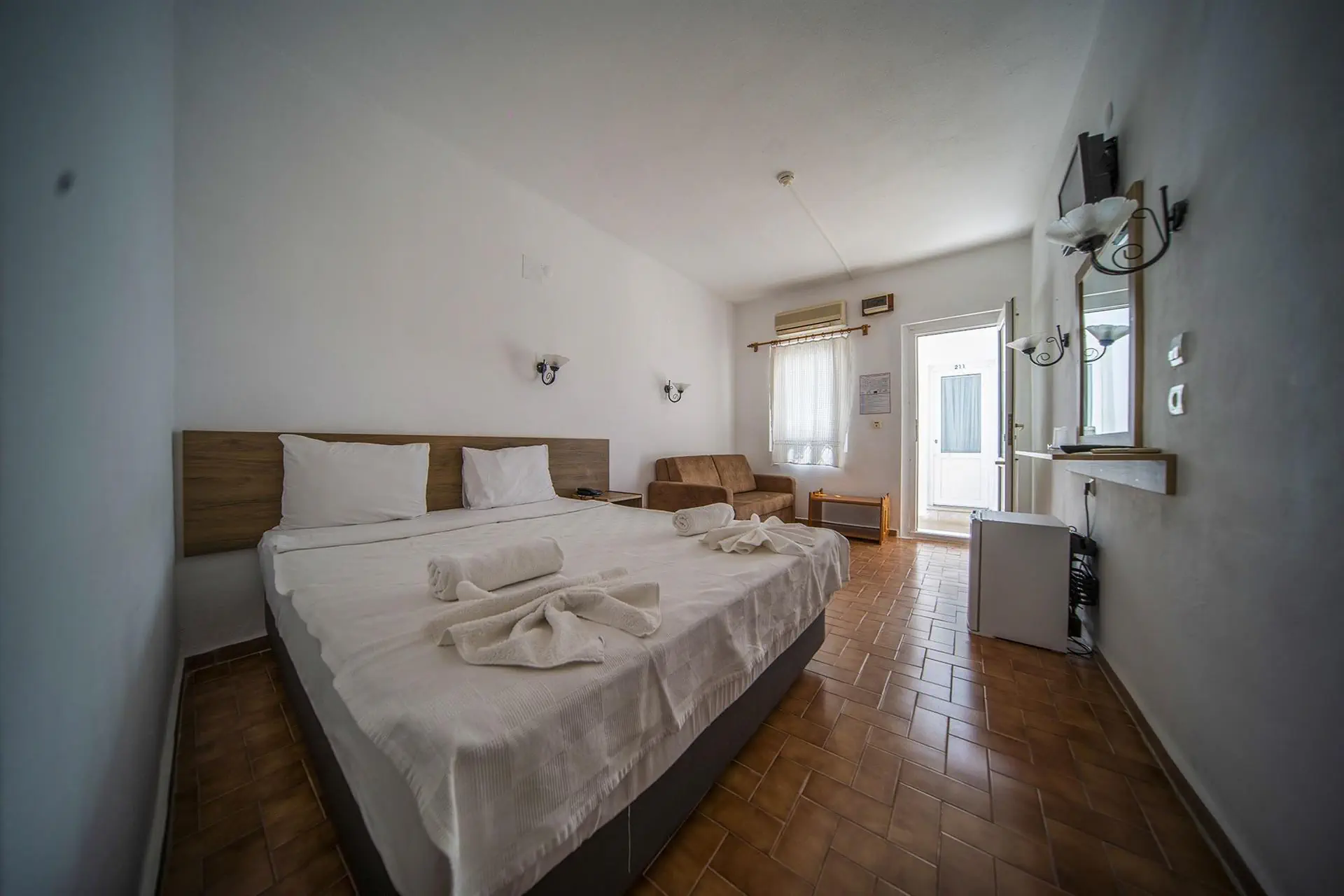 Pokoje Economy dla max 3 osób ok. 21 m2, klimatyzacja (sezonowa), TV-SAT, telefon, mini lodówka, łazienka (WC, prysznic/wanna), suszarka