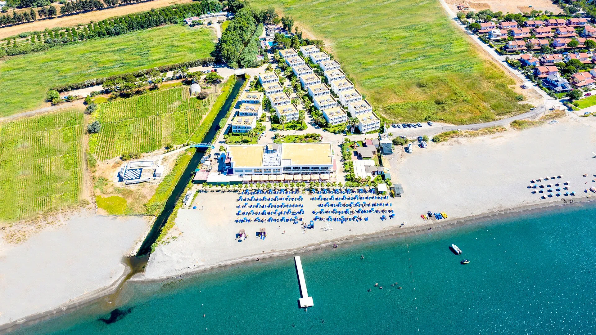 Plaża hotelowa bezpośrednio przy hotelu - piaszczysta - łagodne zejście do morza - pomost - bezpłatne parasole, leżaki, materace i ręcznikiO Hotelu - Labranda Lebedos Princess