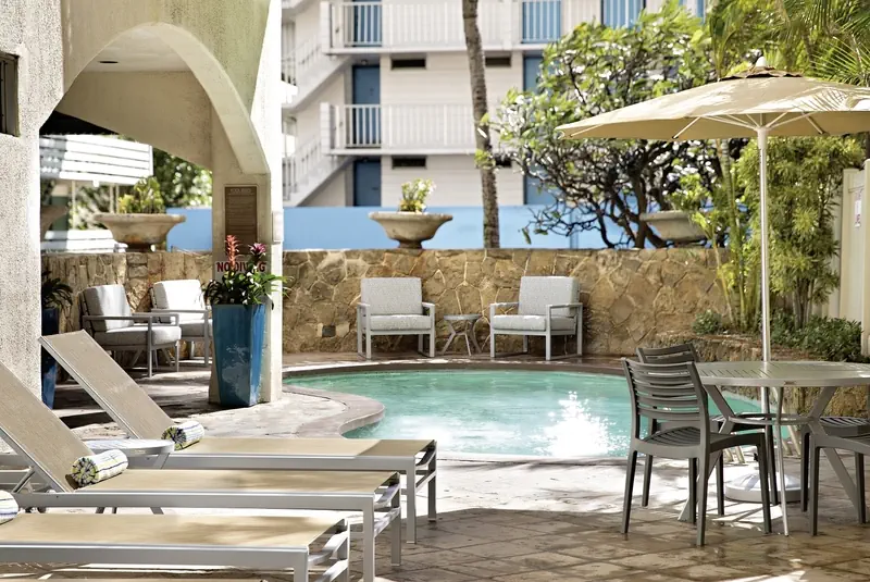 liczba pięter w budynku głównym: 10, liczba mieszkań: 81 miejsca parkingowe (ok. 40 USD/dzień), (ok. 40 CHF/dzień) dla niepalących hotel butikowy, przyjazny dla rodzin, z przyjemną atmosferą recepcja winda, przechowalnia bagażu Wi-Fi, w całym budynku gazeta codzienna, automat do prania na monety (płatne) 1 basen: podgrzewane taras słoneczny, obszar barbecueSport i aktywności w cenie (częściowo dostawca lokalny) - Best Western Coconut Waikiki