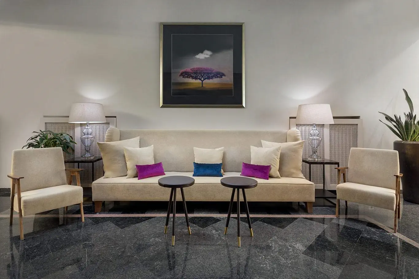 Pokoje wyposażone są w klimatyzację, centralne ogrzewanie, pomieszczenie mieszkalne, kuchnię i łazienkę. Większość pokoi posiada balkon z widokiem na okolicę. Wyłożone wykładziną pokoje wyposażone są w łóżko podwójne i sofę. Istnieje możliwość dostawki. Ponadto skorzystać można z sejfu, minibarku i biurka. Dostępne są również lodówka, minilodówka i ekspres do kawy / herbaty. Kolejnym udogodnieniem jest zestaw do prasowania. Do wyposażenia należą również internet, telefon, telewizor, radio, budzik i Wi-Fi (bezpłatnie). Dostępne są pokoje przystosowane dla osób poruszających się na wózkach inwalidzkich. Łazienki wyposażone są w prysznic i wannę. W łazienkach znajduje się ponadto suszarka do włosów. Ekskluzywnie dla naszych podróżnych przygotowaliśmy w łazienkach artykuły kosmetyczne i komplet ręczników. Hotel oferuje pokoje rodzinne, pokoje dla niepalących i pokoje dla palących.Oferta sportowo-rozrywkowa - Ambra