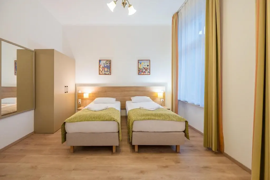 Przestronne pokoje są klimatyzowane oraz wyposażone w telewizor z płaskim ekranem i dostępem do kanałów satelitarnych. W łazience mieści się wanna lub prysznic, a z okien większości pokoi roztacza się widok na cichy dziedziniec.Wyżywienie - Baross City