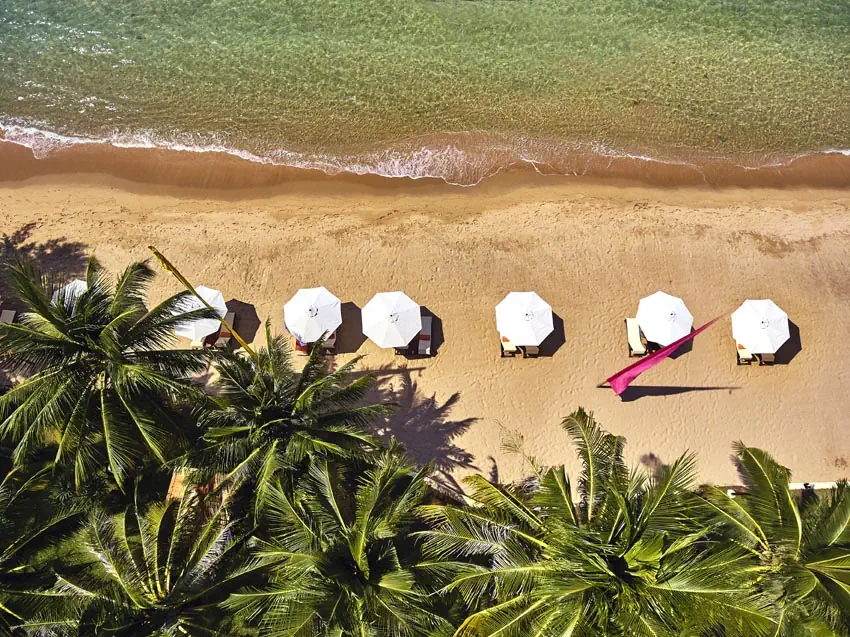 Hotel znajduje się na zachodnim wybrzeżu wyspy Phu Quoc, znanej z krystalicznie czystych wód i białych piaszczystych plaż. Kurort jest położony z dala od miejskiego zgiełku, co zapewnia spokój i prywatność. Dotarcie na wyspę Phu Quoc jest łatwe dzięki lokalnemu lotnisku, które znajduje się zaledwie kilkanaście kilometrów od hotelu.Plaża - Chen Sea Resort & Spa Phu Quoc (ex. Chen La Resort & Spa)