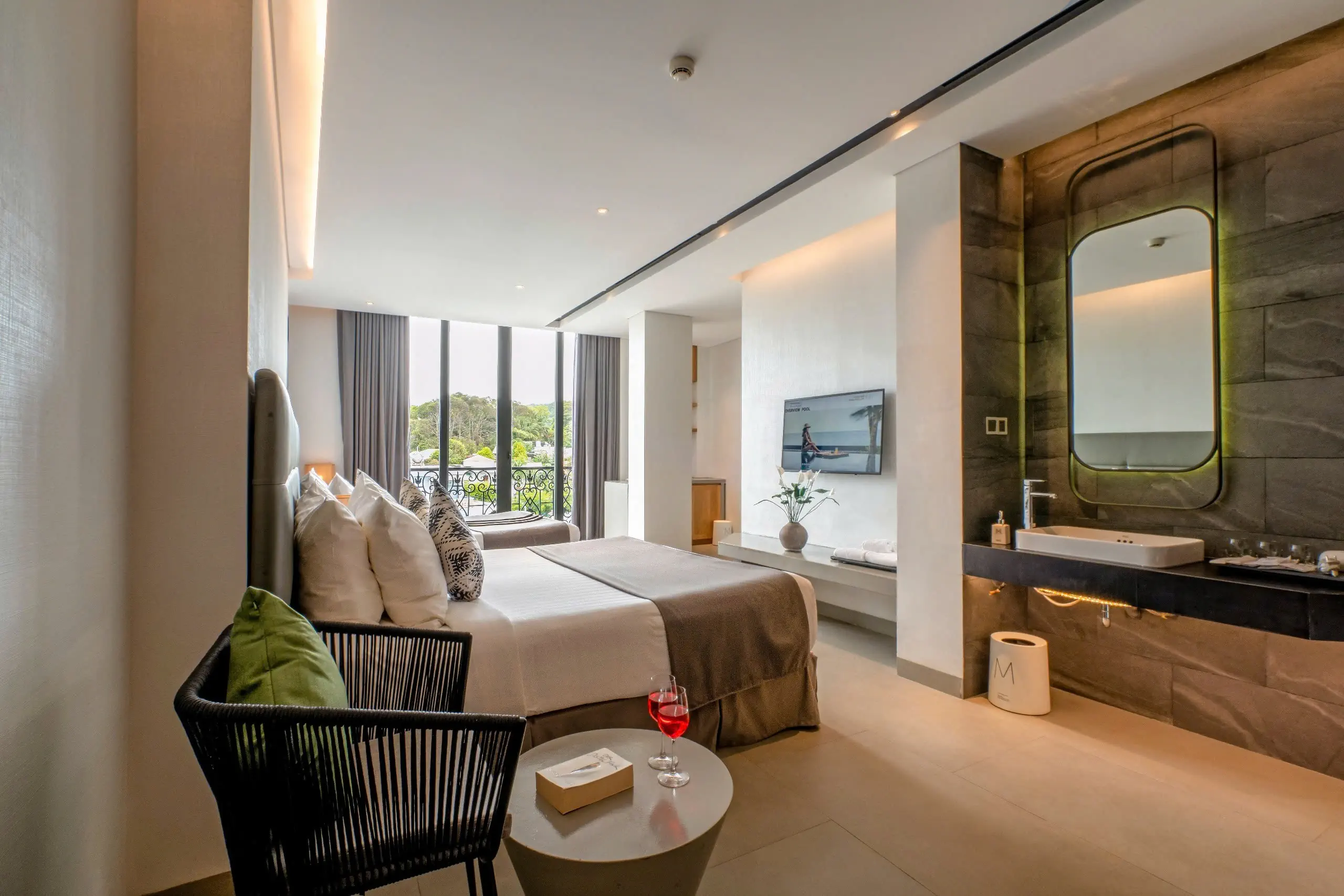 Dla max. 3 osób, Kanały telewizji: Angielski, Telefon w pokoju, prysznic, Powierzchnia pokoju: ok. 20 m2, Rodzaj podłogi: płytki, Sprzątanie codziennie, 1 sypialnia, Maksymalna liczba osób dorosłych: 2, Maksymalna liczba dzieci: 2, Widok niesprecyzowany , Liczba łazienek: 1, Liczba toalet: 1, Zestaw do parzenia kawy i herbaty, Klimatyzacja: Klimatyzacja indywidualnaDELUXE DOUBLE SUITE WITH BALCONY - M Hotel Phu Quoc