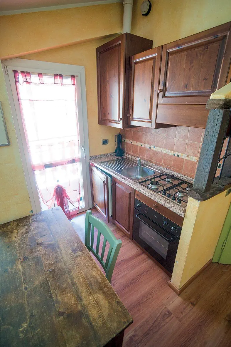 bilo 6 - 1 mała sypialnia z łóżkiem małżeńskim i łóżkiem piętrowym, bardzo mały pokój dzienny z aneksem kuchennym i rozkładaną kanapą dla 2 osób, łazienka, zwykle balkon; ze względu na wielkość apartamenu zalecamy maksymalnie 2 dorosłym i 2 dzieciom trilo 5 - 1 sypialnia z łóżkiem małżeńskim, 1 mała sypialnia z łóżkiem piętrowym, pokój dzienny z aneksem kuchennym i rozkładaną kanapą dla 1 osoby, łazienka z wanną, balkon; apartament znajduje się na poddaszu trilo 6/7 - 1 sypialnia z łóżkiem małżeńskim i ewentualnie 1 łóżkiem pojedynczym, 1 mała sypialnia z 2 pojedynczymi łóżkami lub łóżkiem piętrowym, mały pokój dzienny z częściowo oddzielonym aneksem i rozkładaną kanapą dla 2 osób, łazienka z prysznicem lub wanną (u pokoi typu trilo 7 dodatkowe 1 WC), balkon Dodatkowe wyposażenie: TV, piekarnik, pralka, wi-fiWyżywienie - La Lanterna